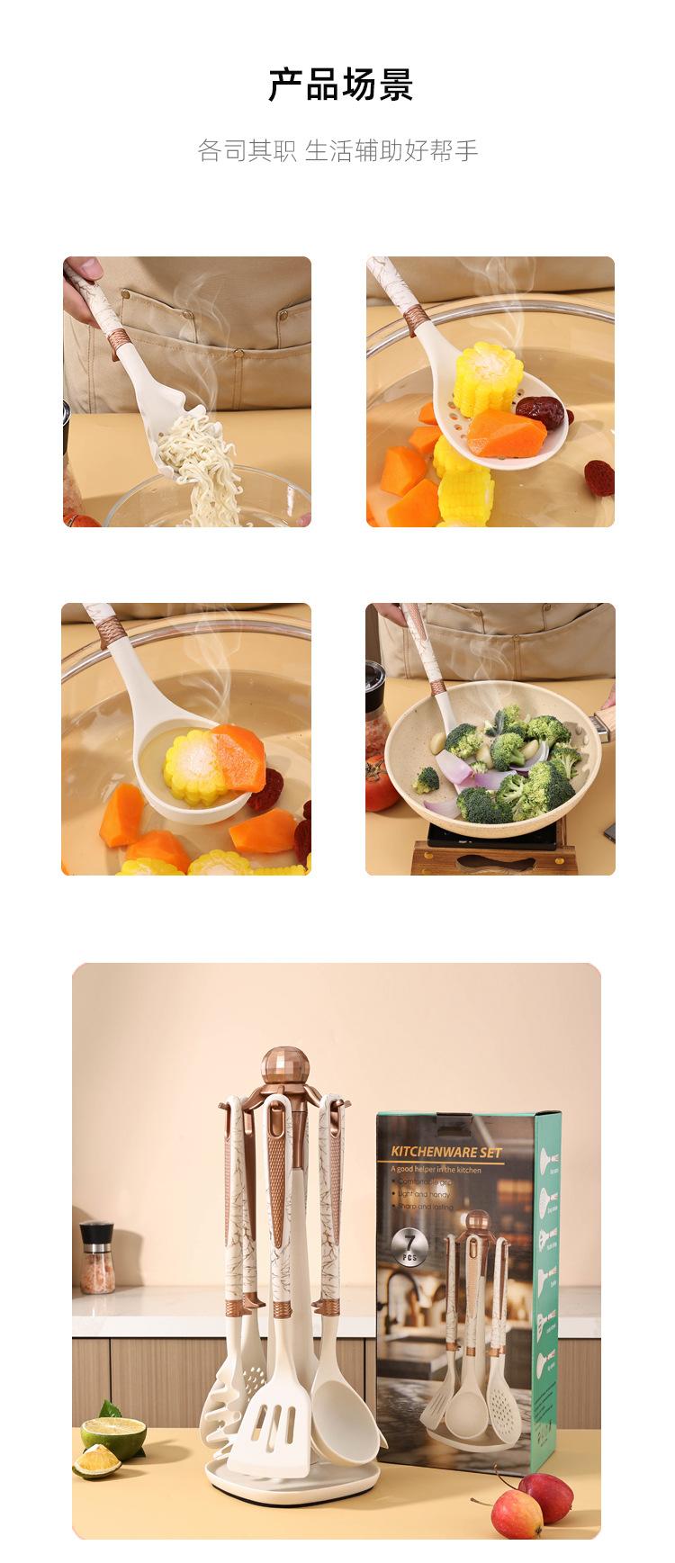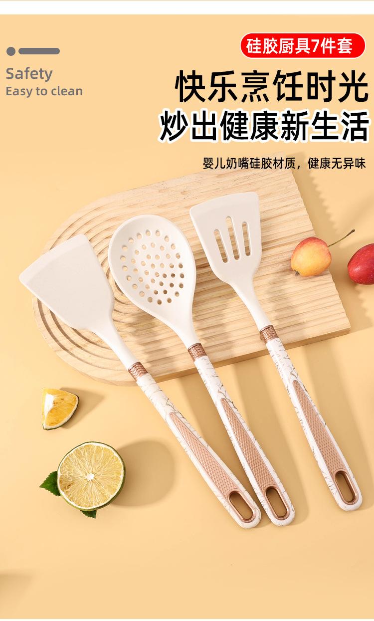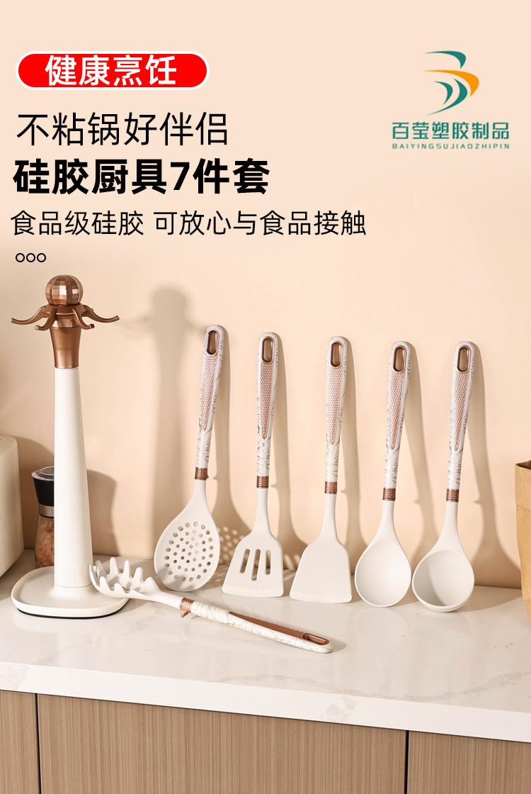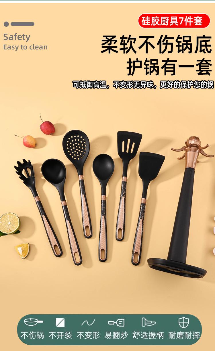 Utensilios de Cocina de Silicona Personalizados Juego de 7 Piezas para Cocina Casera Espátula Cuchara para Sopa Juego de Cocina Antiadherente con Soporte de Almacenamiento