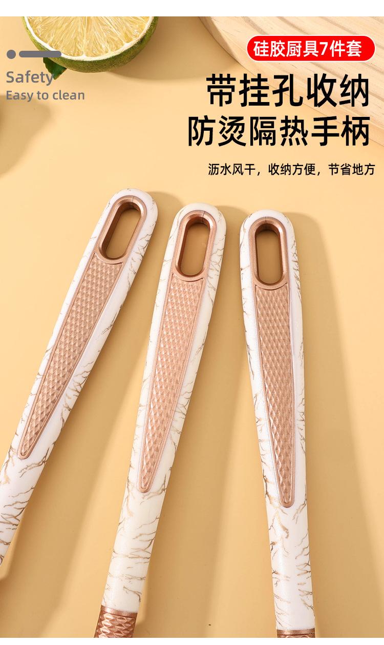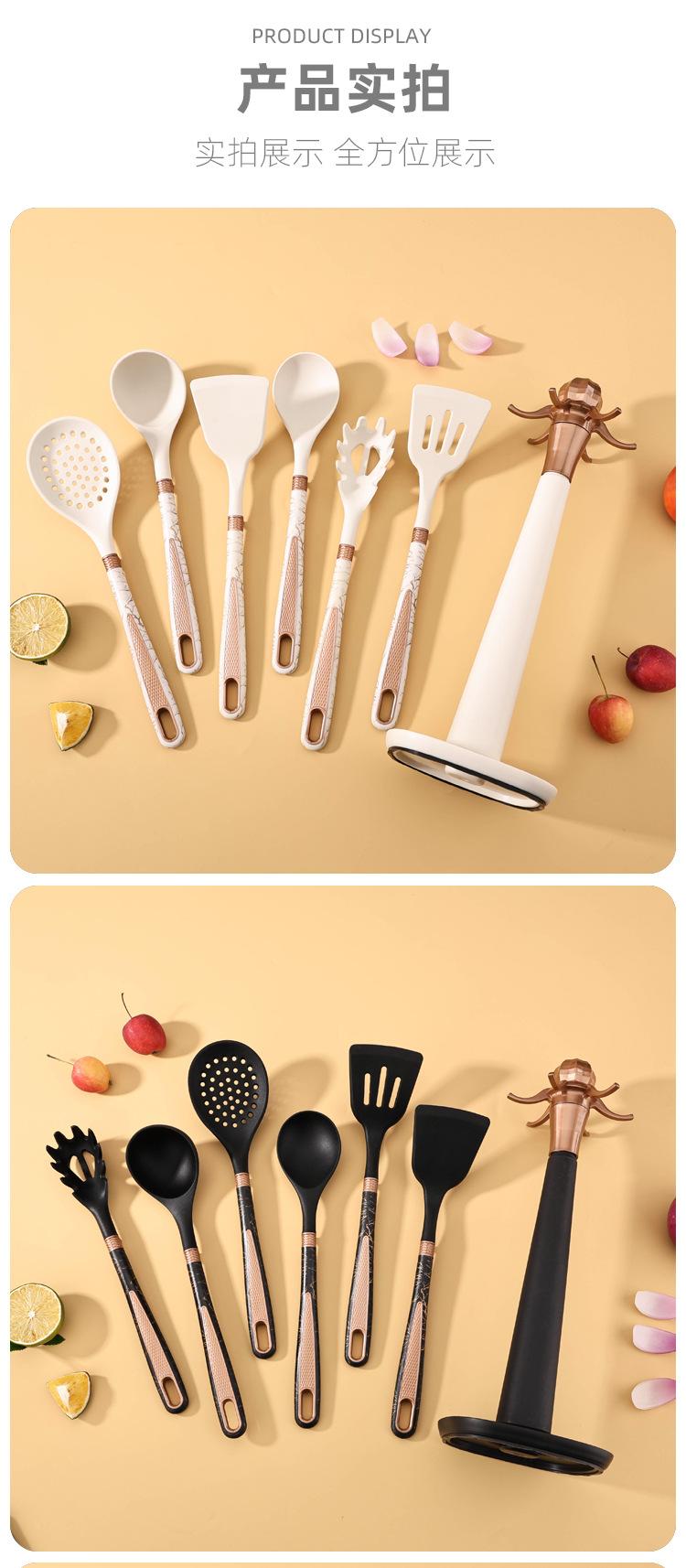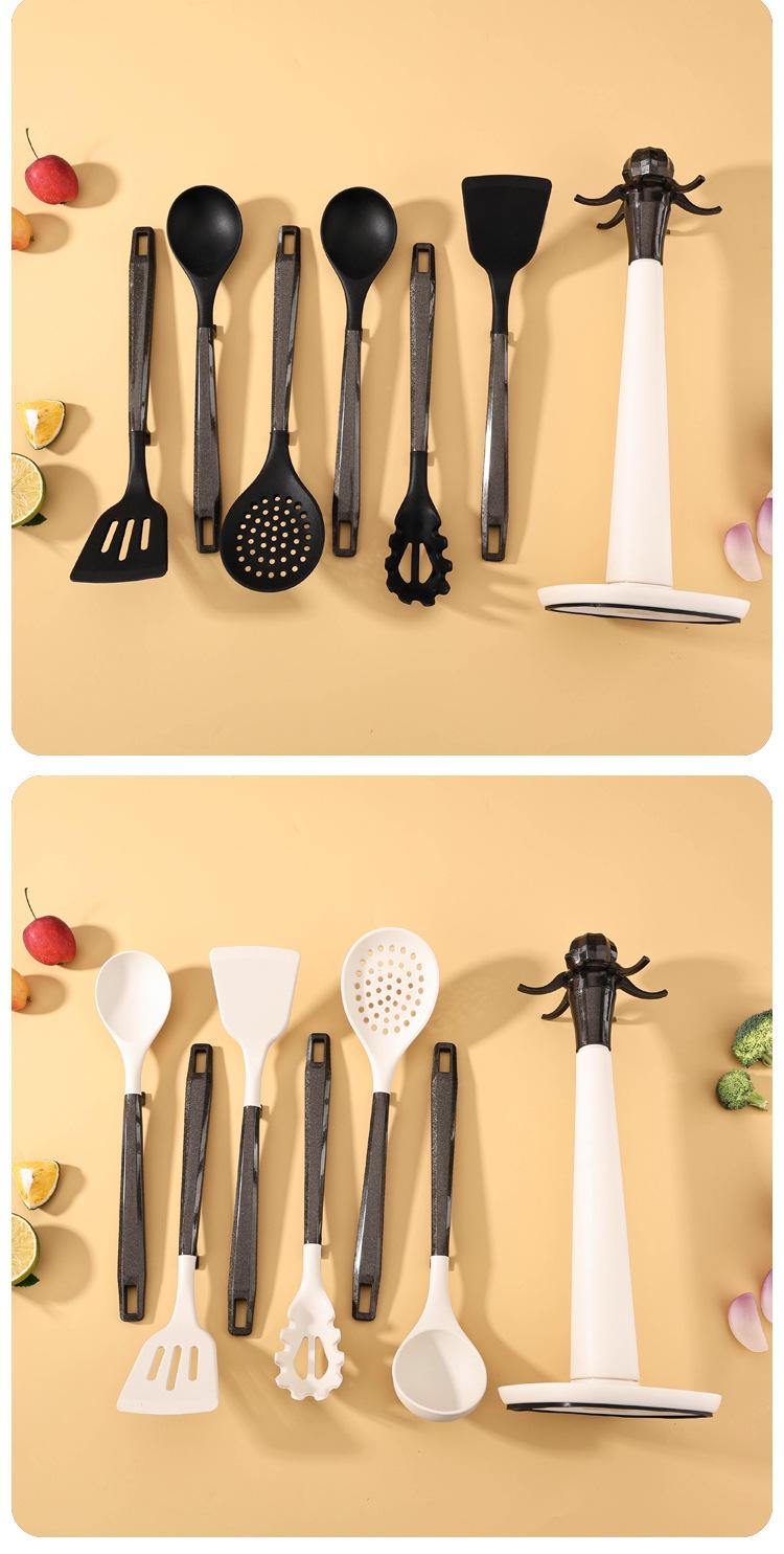 Utensilios de Cocina de Silicona Personalizados Juego de 7 Piezas para Cocina Casera Espátula Cuchara para Sopa Juego de Cocina Antiadherente con Soporte de Almacenamiento