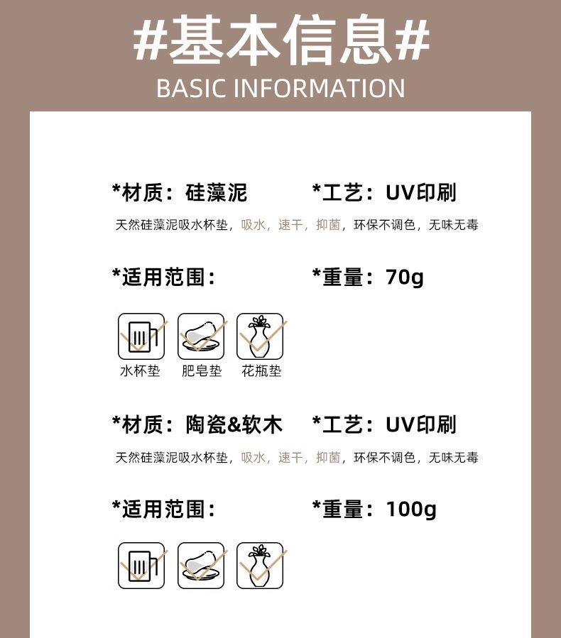 Ceramic round shape (customized upon request), Ceramic square (customized upon request), Diatom mud square (cu...