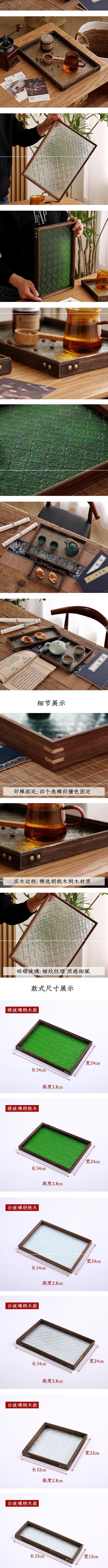 Metal handle black walnut tray 28*22*3, Metal handle black walnut tray 38*28*3, White glass tray with metal ha...