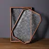 Bandeja de Vidrio con Flor de Begonia Retro Hogar Rectangular Madera Maciza de Nogal Bandeja Pequeña para Té Almacenamiento de Tazas Bandeja para Frutas y Snacks