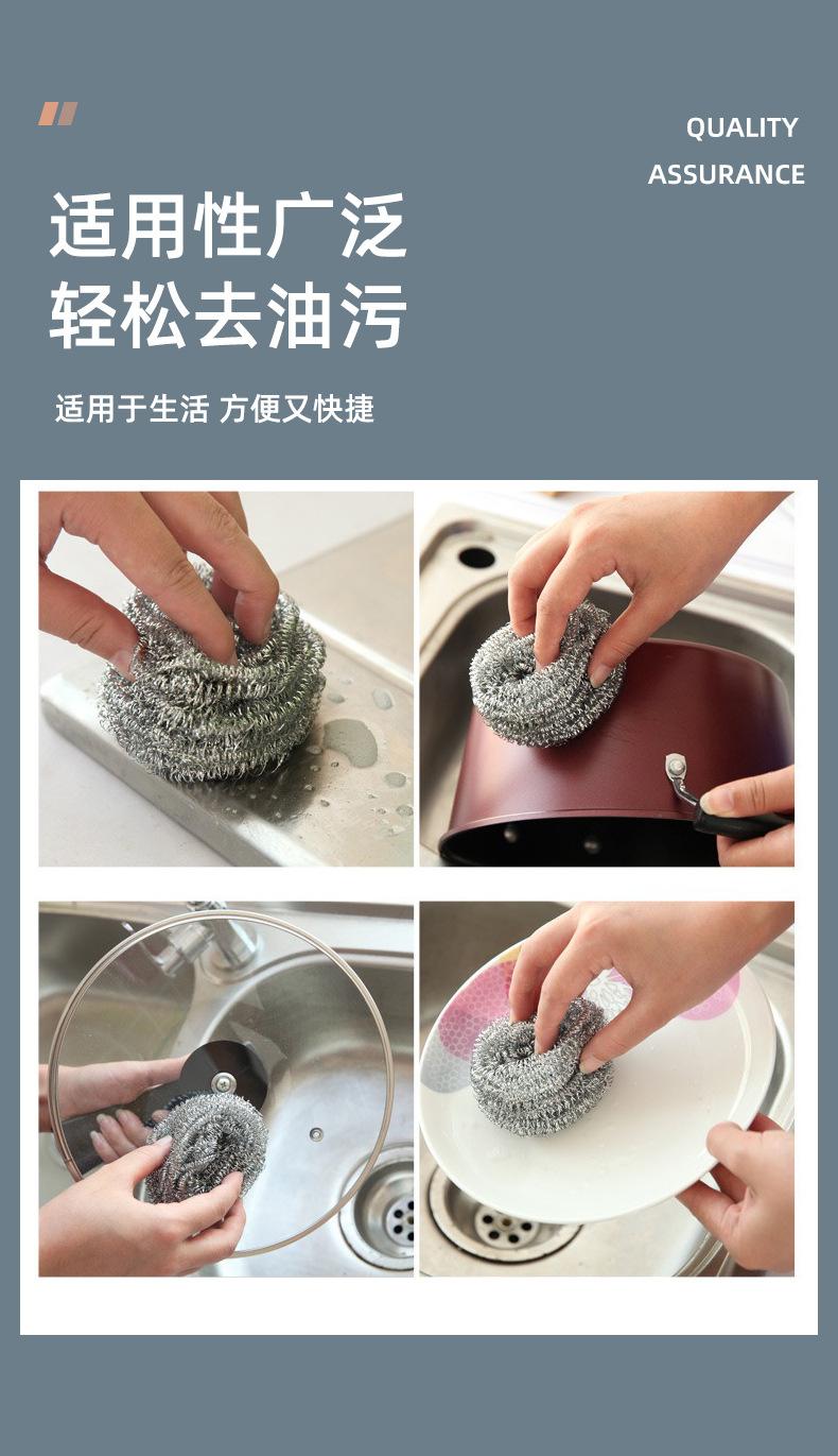 Paquete de 6 para el hogar Bola de alambre de acero grande Cepillo para ollas de cocina Lavavajillas Bola de limpieza de acero inoxidable con cepillo Bola de alambre de acero Venta al por mayor