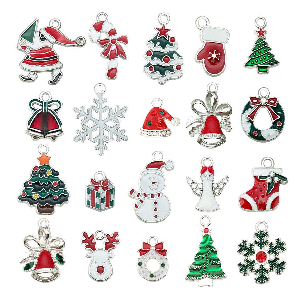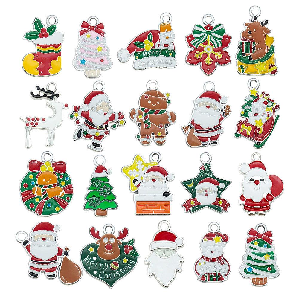 Mezcla 100 Aleación Goteo de Aceite Navidad DIY Accesorios de Joyería Papá Noel Muñeco de Nieve Campana Alce Pulsera Colgante