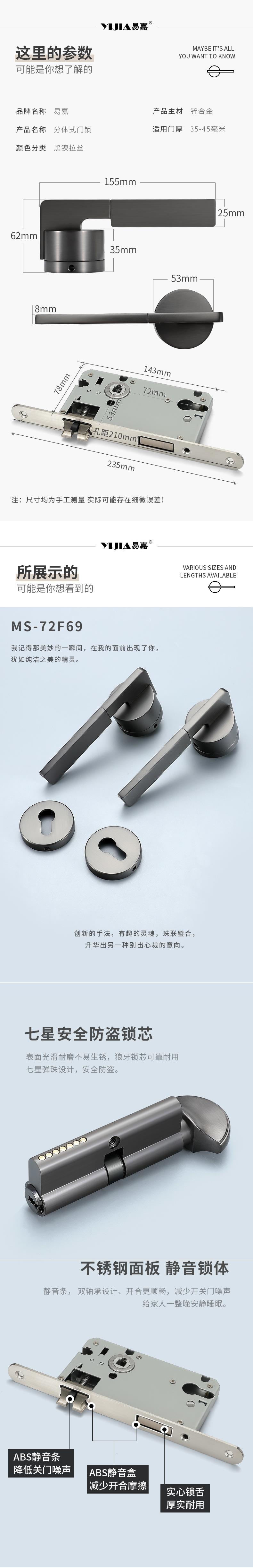 72f69 black nickel door lock—silent lock body, Door lock + 3-piece mother-in-law hinge + 1 door latch, Door lo...