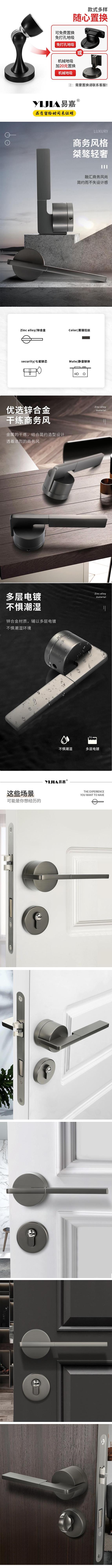 Cerradura de Puerta Dividida para Interior de Níquel Negro Simple Aleación de Zinc Cilindro de Cerradura Silencioso Fabricante Mayorista de Cerraduras para Puerta de Hogar