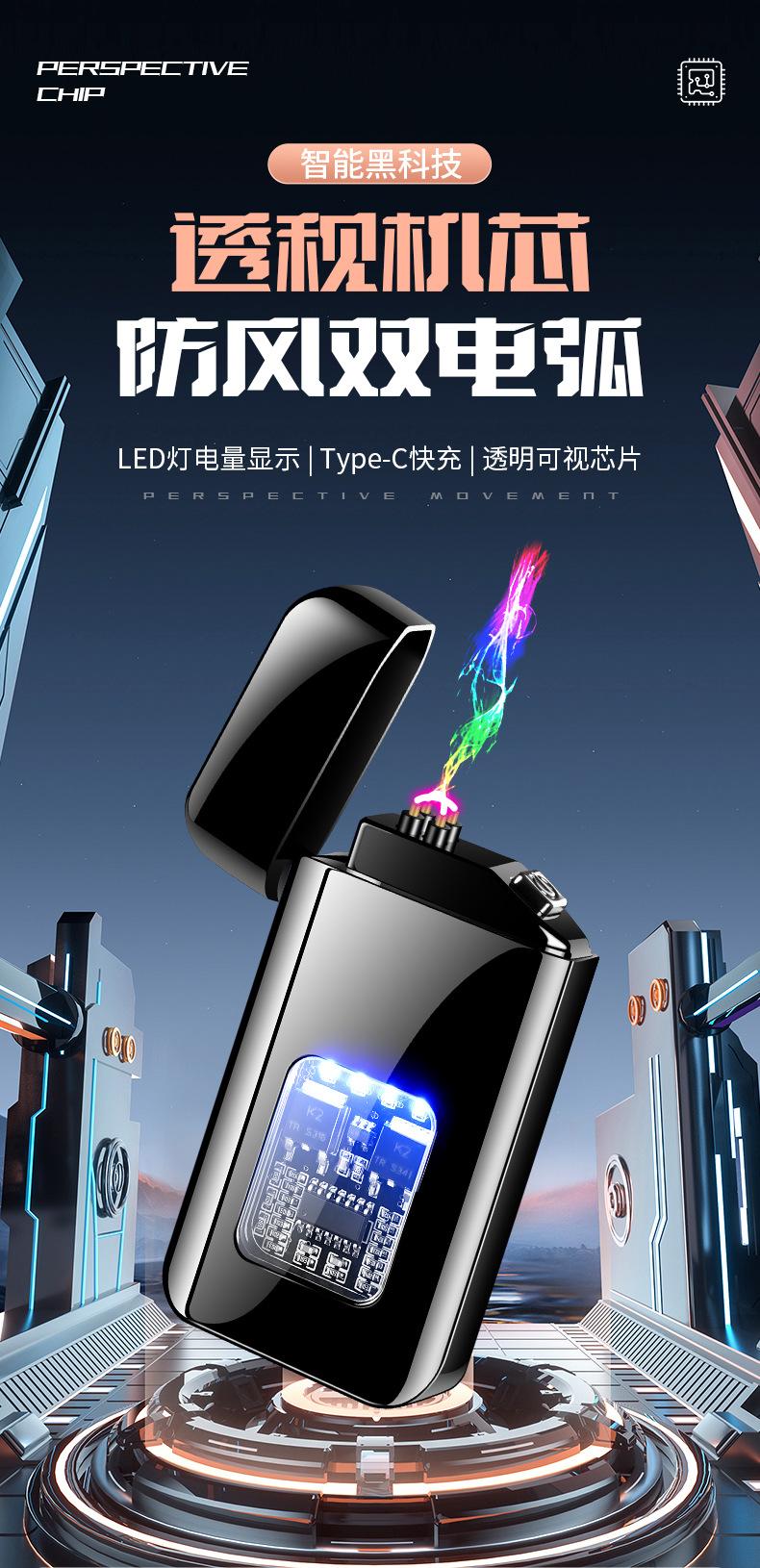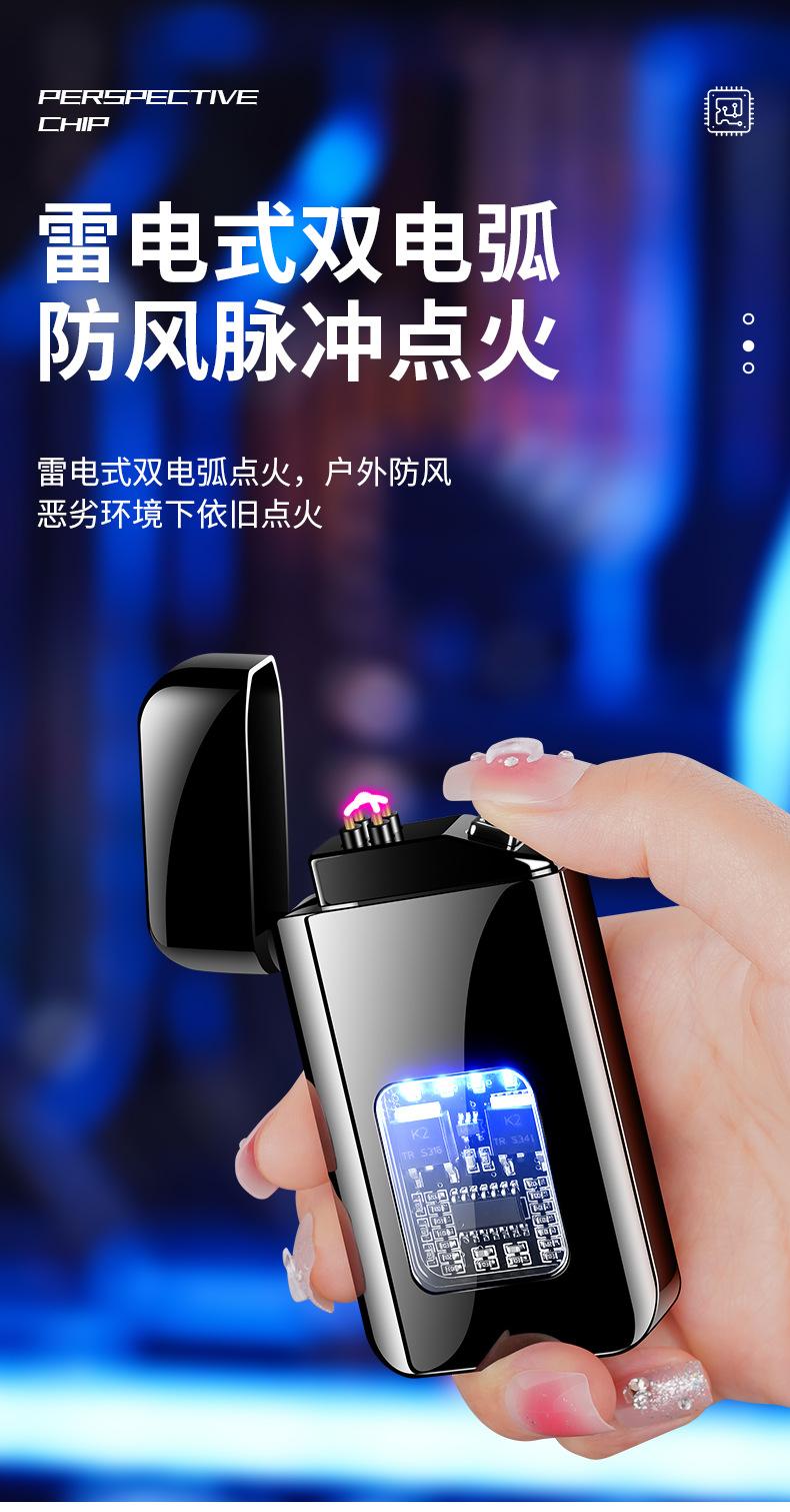 Compra WF33 encendedor a prueba de viento de doble arco TC de carga rápida chip de perspectiva tecnología creativa explosiones transfronterizas al por mayor al por mayor en Joom.pro