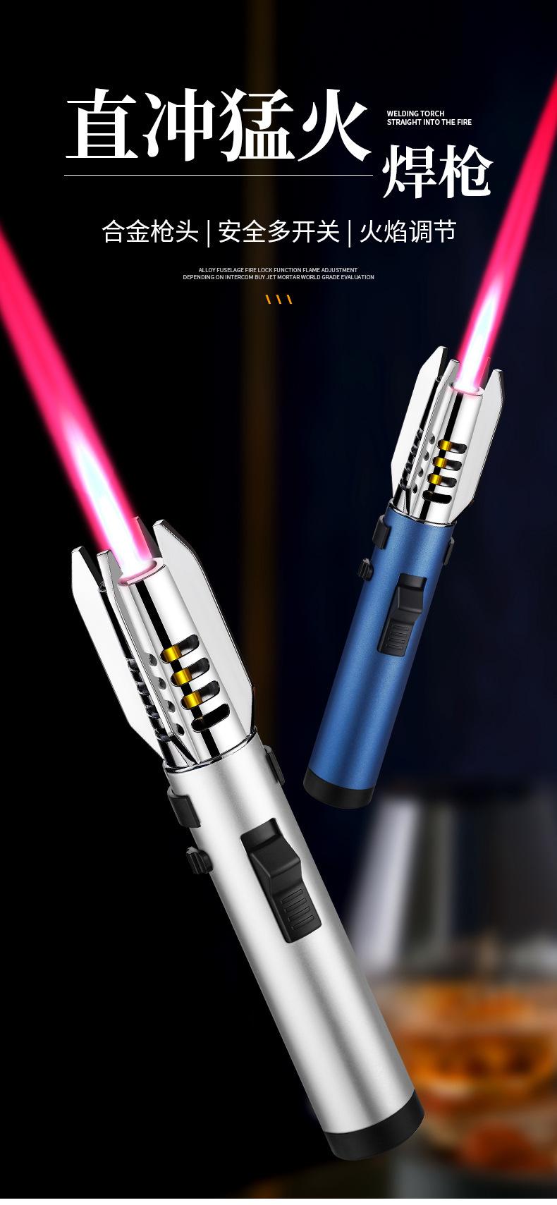 Estilo Similar de Celebridad de Internet Exportación Transfronteriza Metal A Prueba de Viento Soplete Recto Pistola para Soldar Cigarros Encendedor Inflable Fabricante Venta al por Mayor