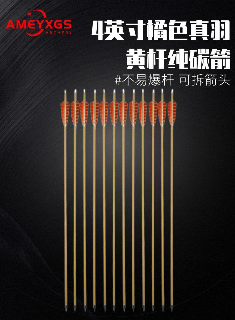 4inch orange real feather yellow rod pure carbon arrow (500 scratch)