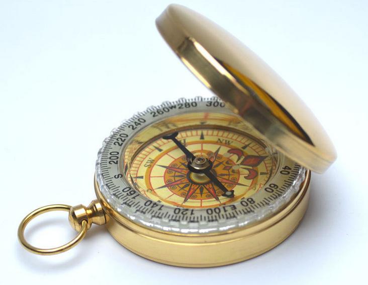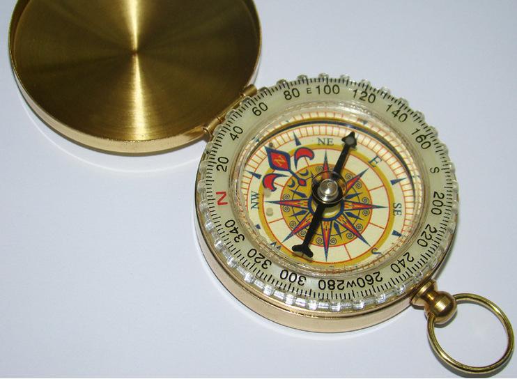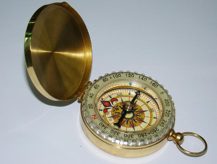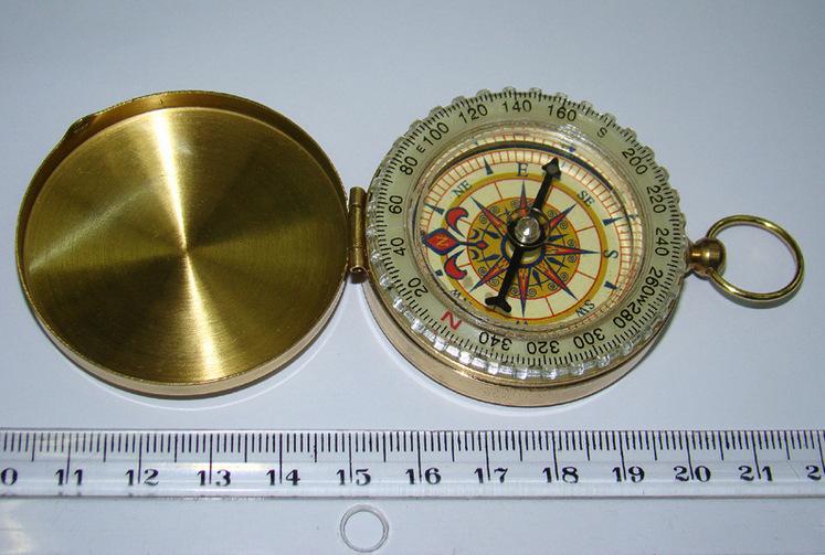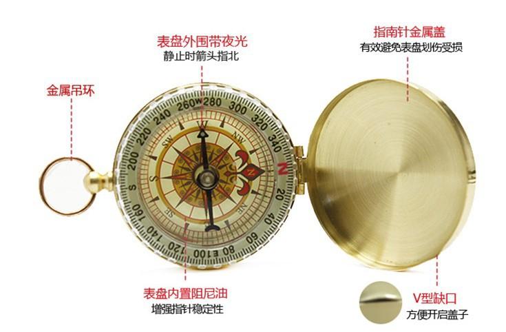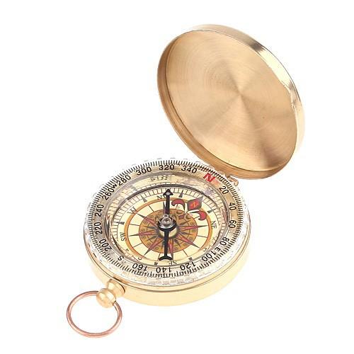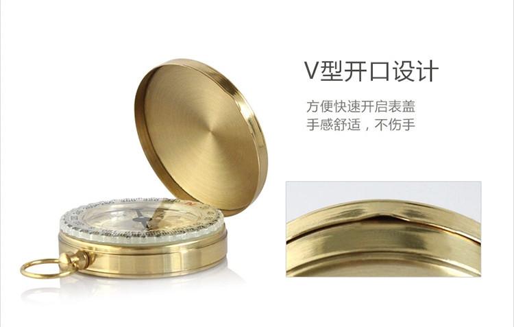 Reloj de bolsillo con brújula abatible de cobre puro dorado, exquisito regalo con tapa, impermeable, luminoso, guía multifuncional