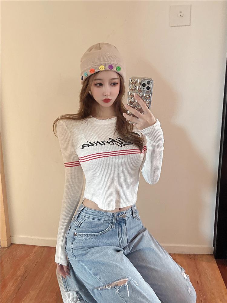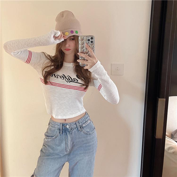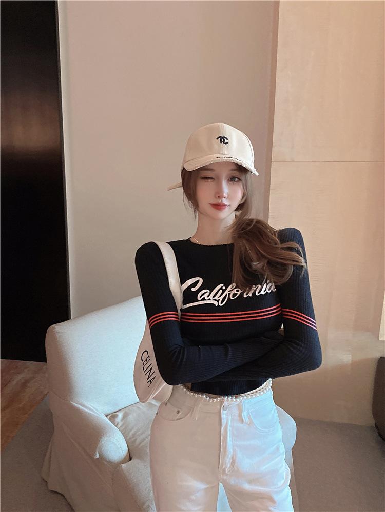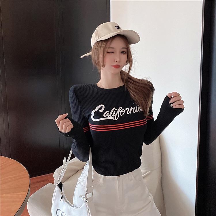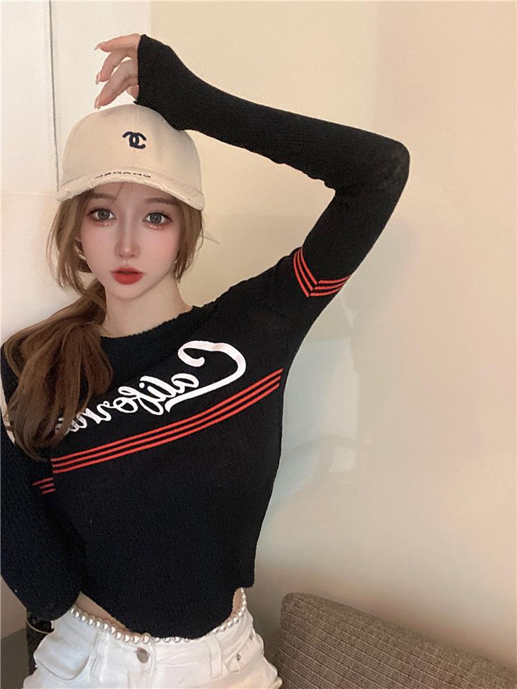 Compra Top popular de verano 2024 en línea con letras, cuello redondo, sexy, adelgazante, personalidad, versátil, suéter de punto para mujer al por mayor en Joom.pro