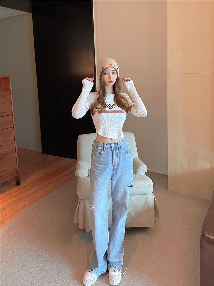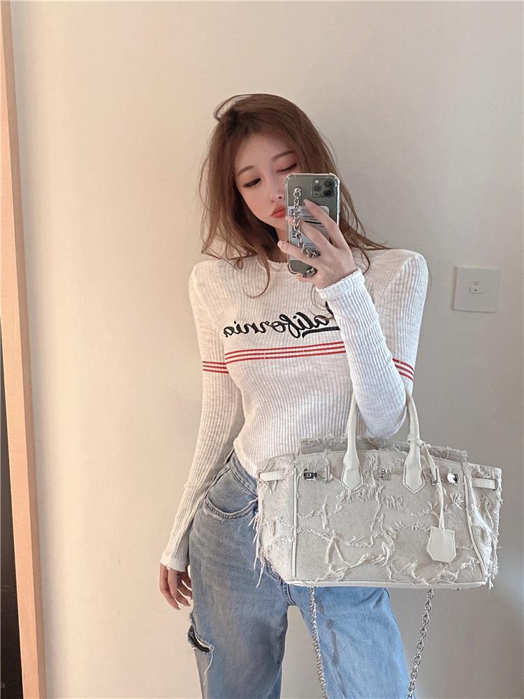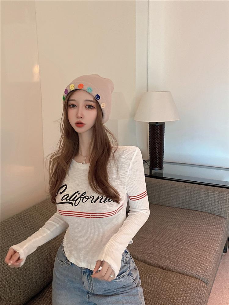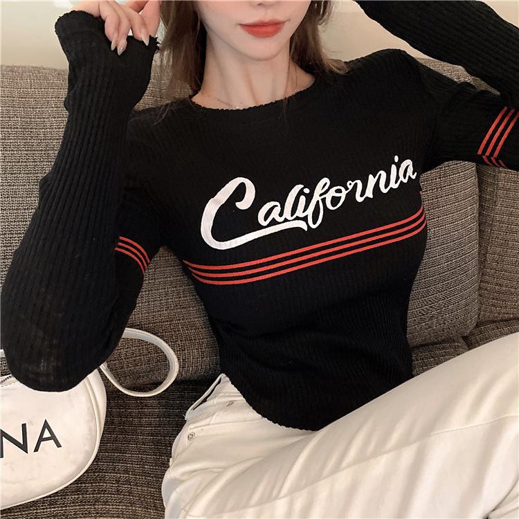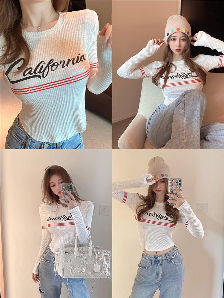 Compra Top popular de verano 2024 en línea con letras, cuello redondo, sexy, adelgazante, personalidad, versátil, suéter de punto para mujer al por mayor en Joom.pro