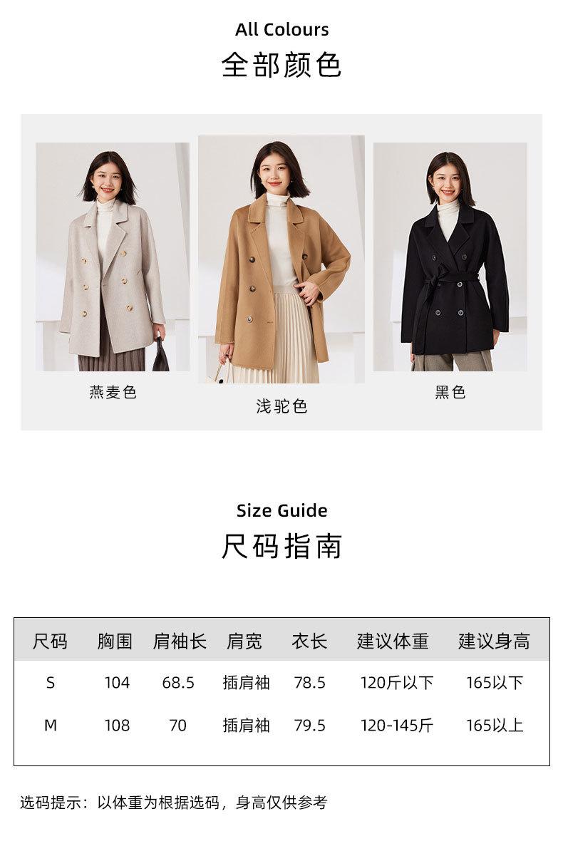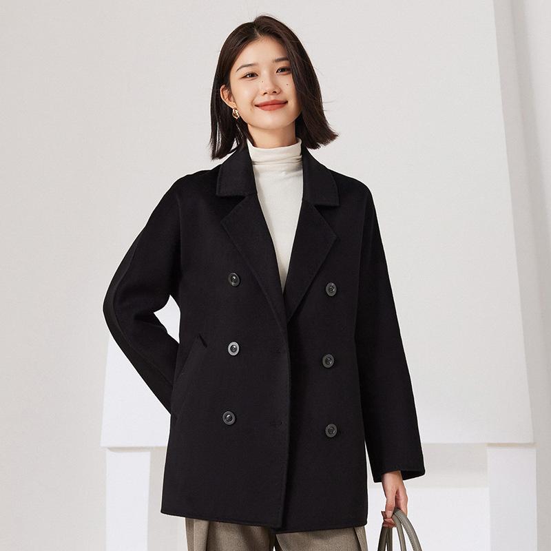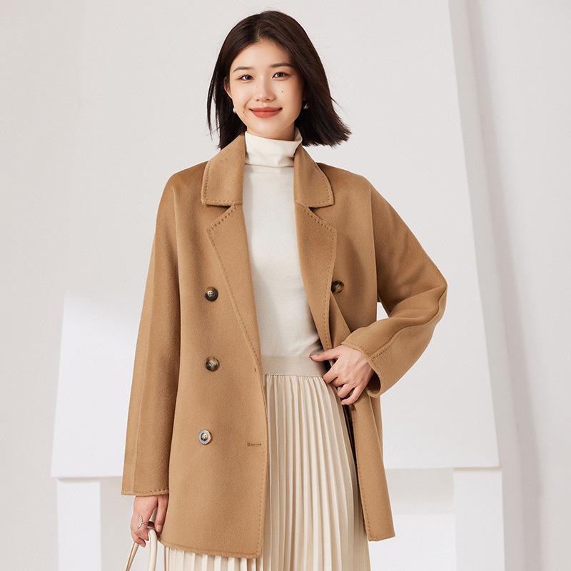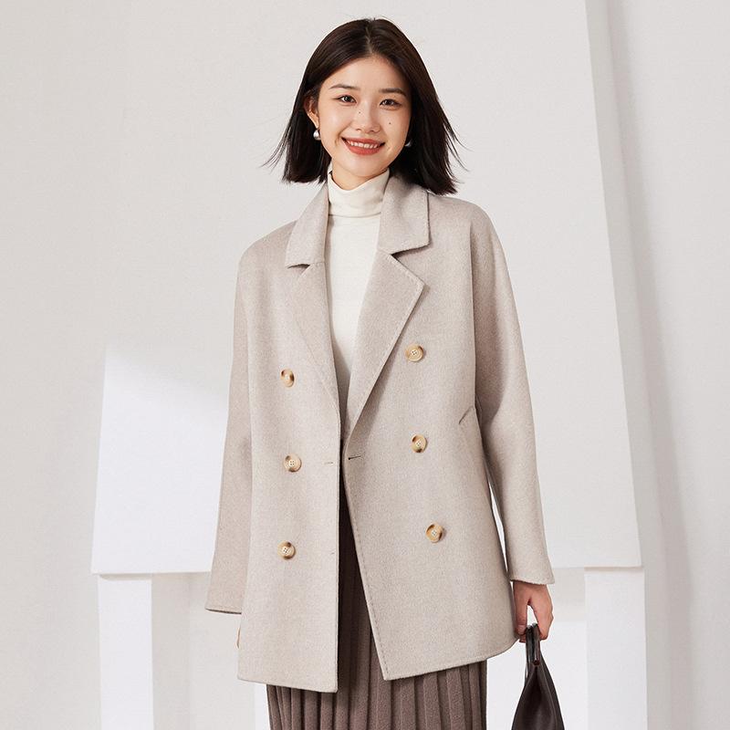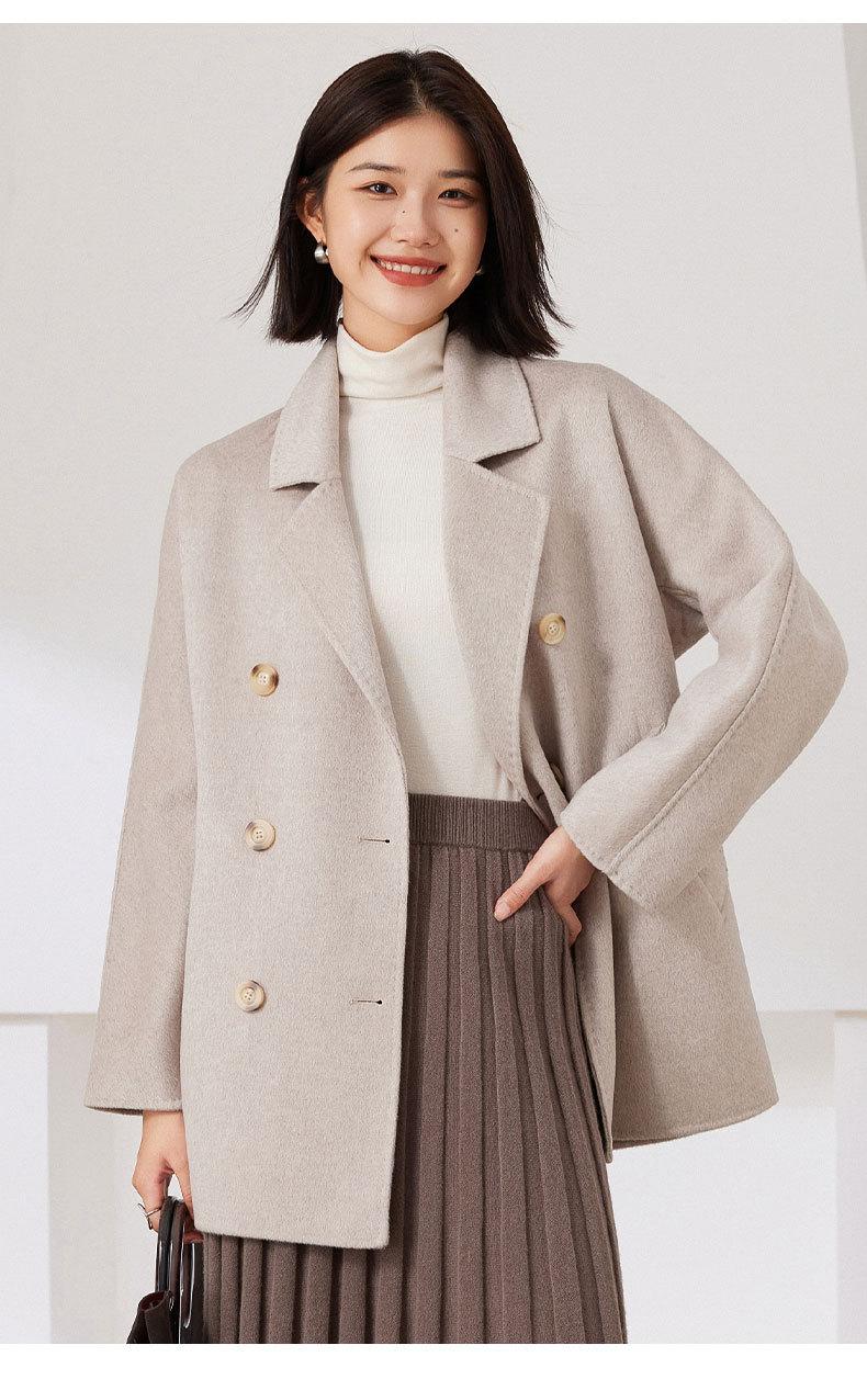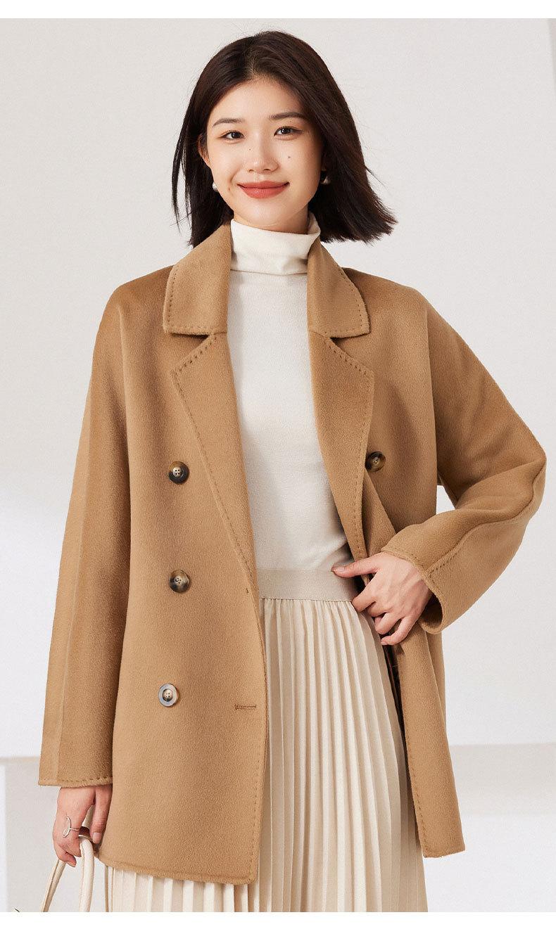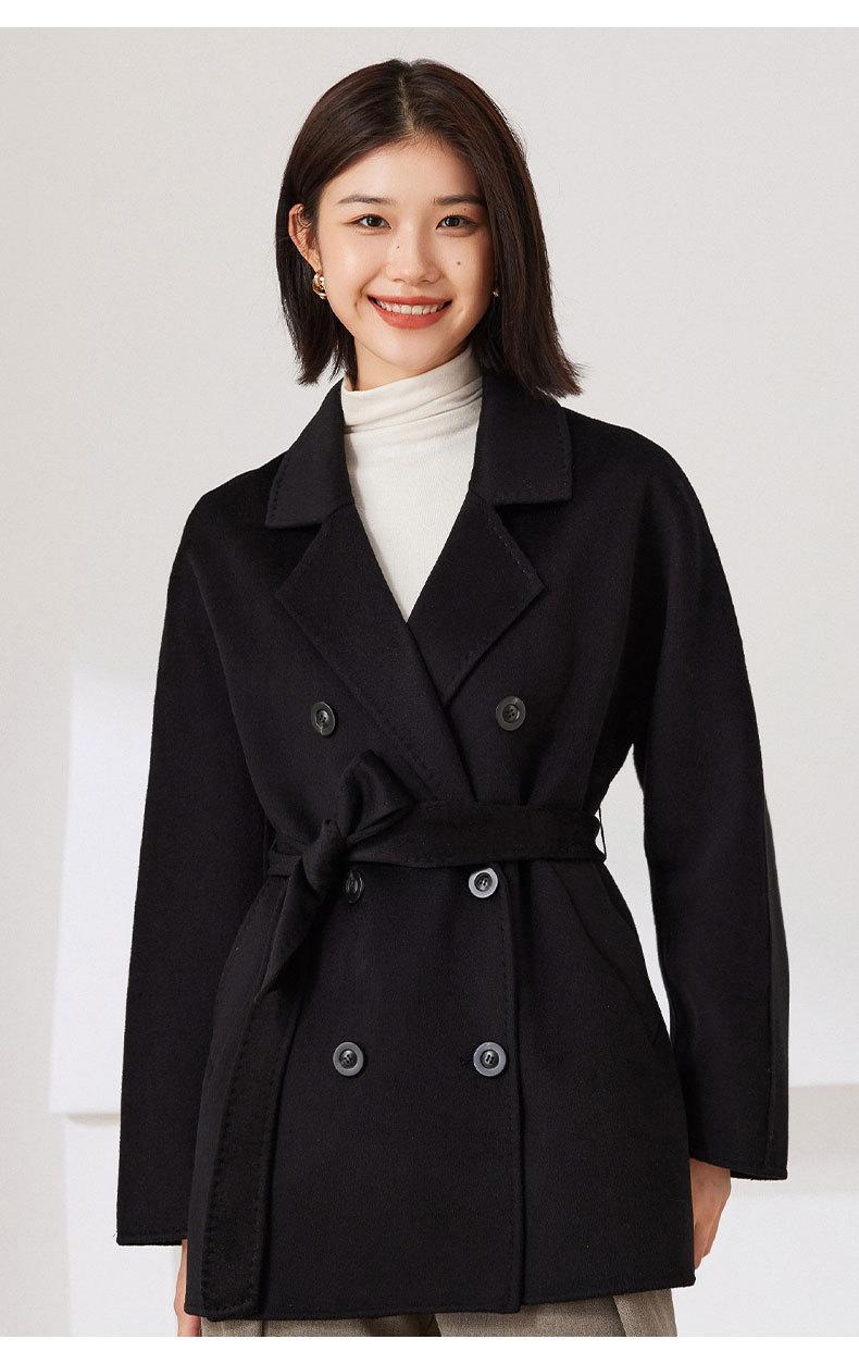 Abrigo de Cachemira de Doble Cara para Mujer 2024 Nuevo Estilo Pequeño Engrosado Estilo Coreano Doble Botonadura Abrigo Duffle de Cachemira con Cinturón
