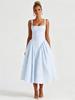 Moda Europea y Americana Nuevo Estilo Fresco Diseño de Estampado Sexy Espalda Descubierta Cuello Cuadrado Vestido de Tirantes Ropa de Mujer 2025