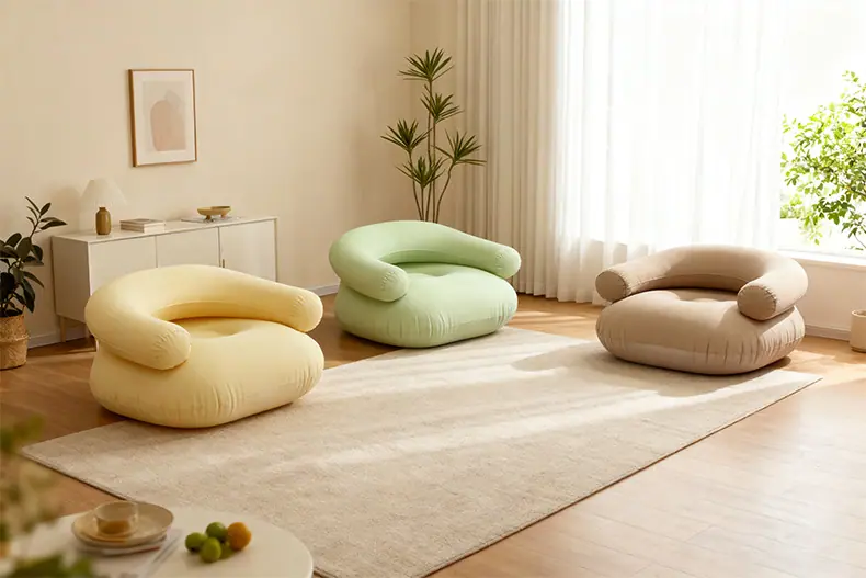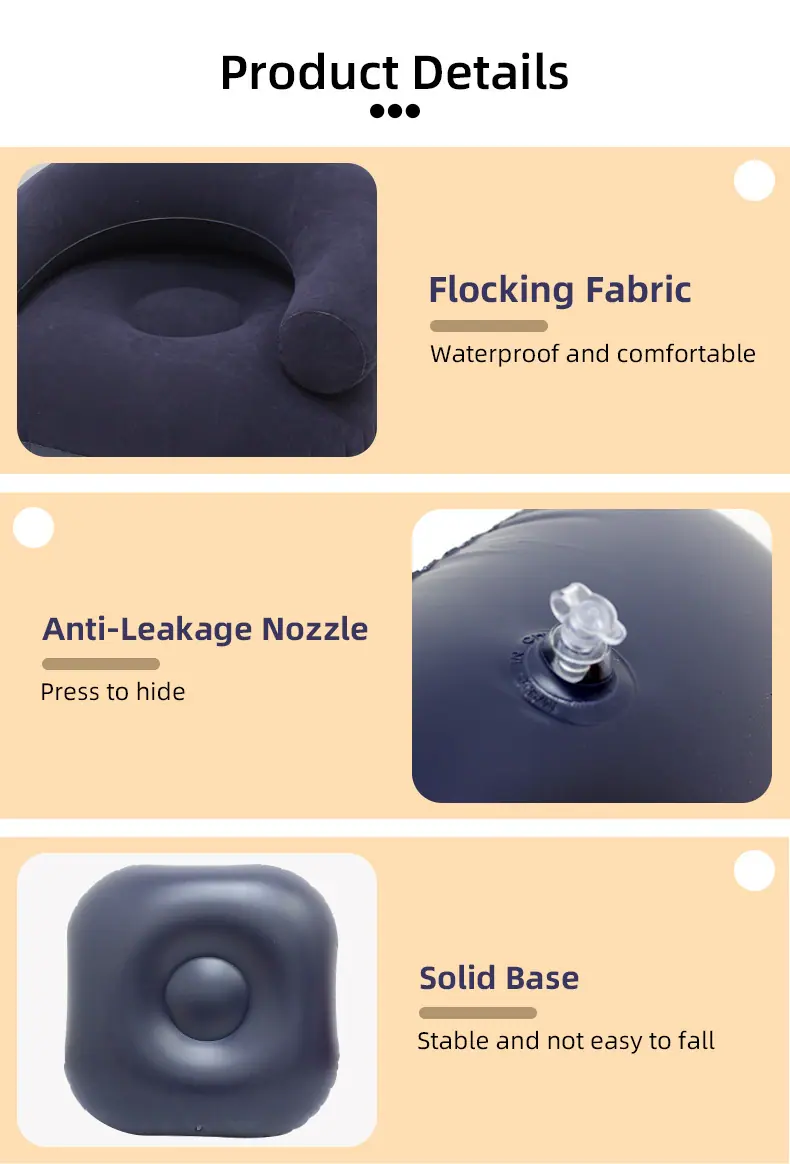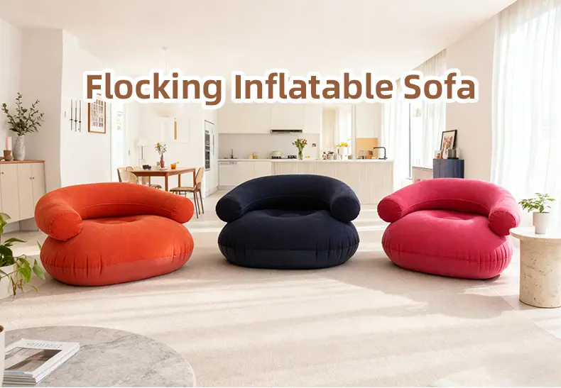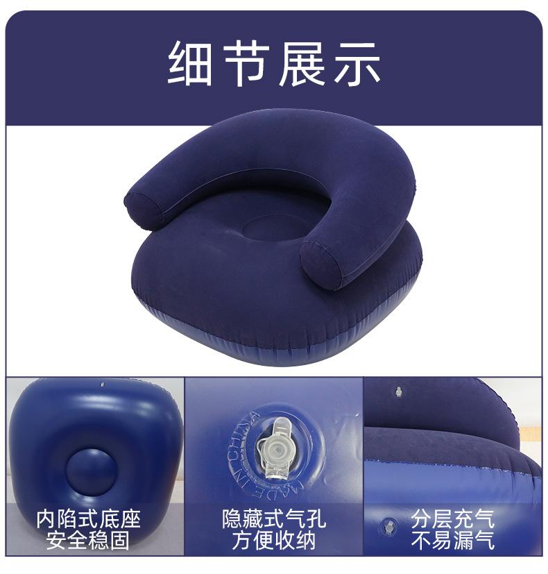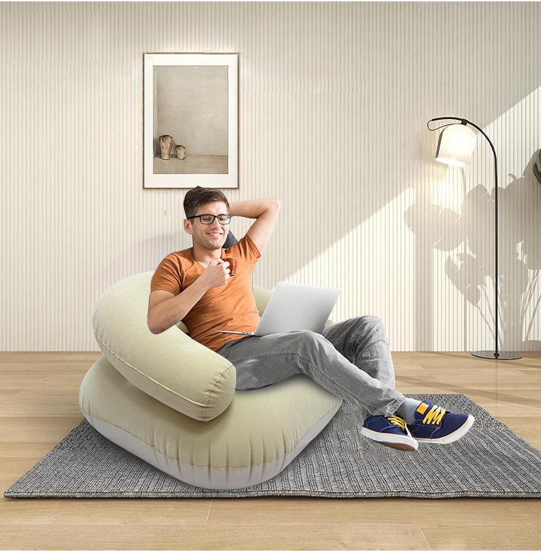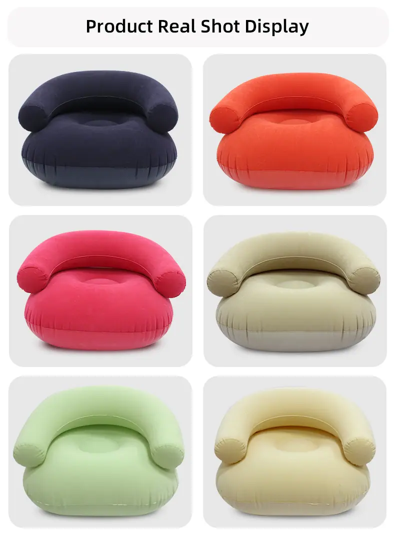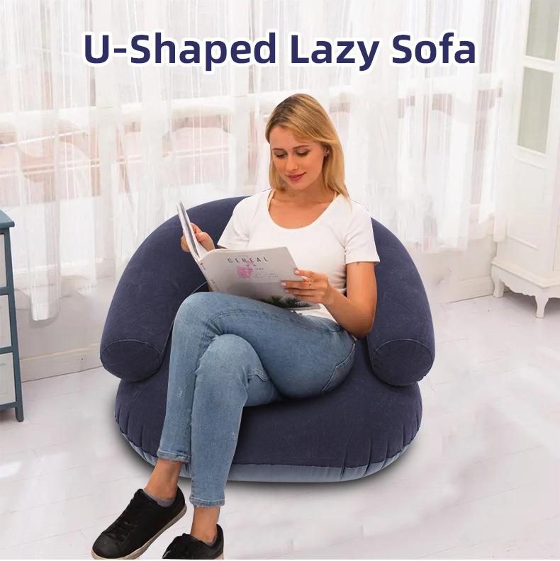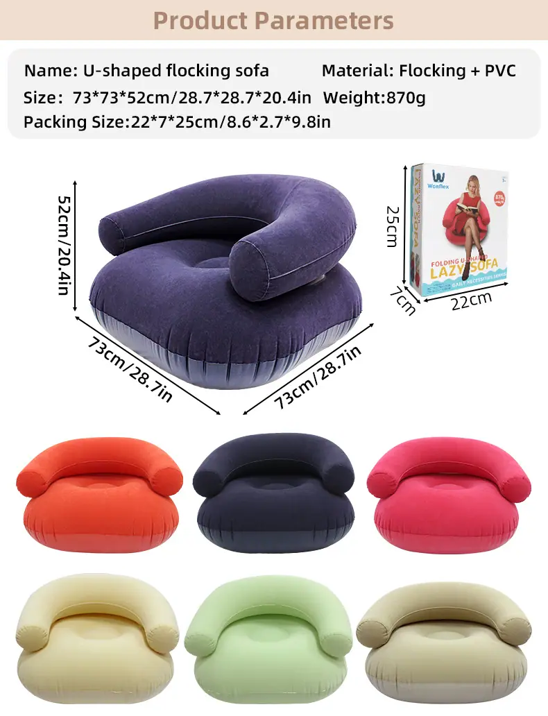 Sofá Inflable de Ocio en Forma de U Flocado con Reposabrazos y Respaldo Asientos Exterior Pvc Interior Portátil Silla Individual Inflable