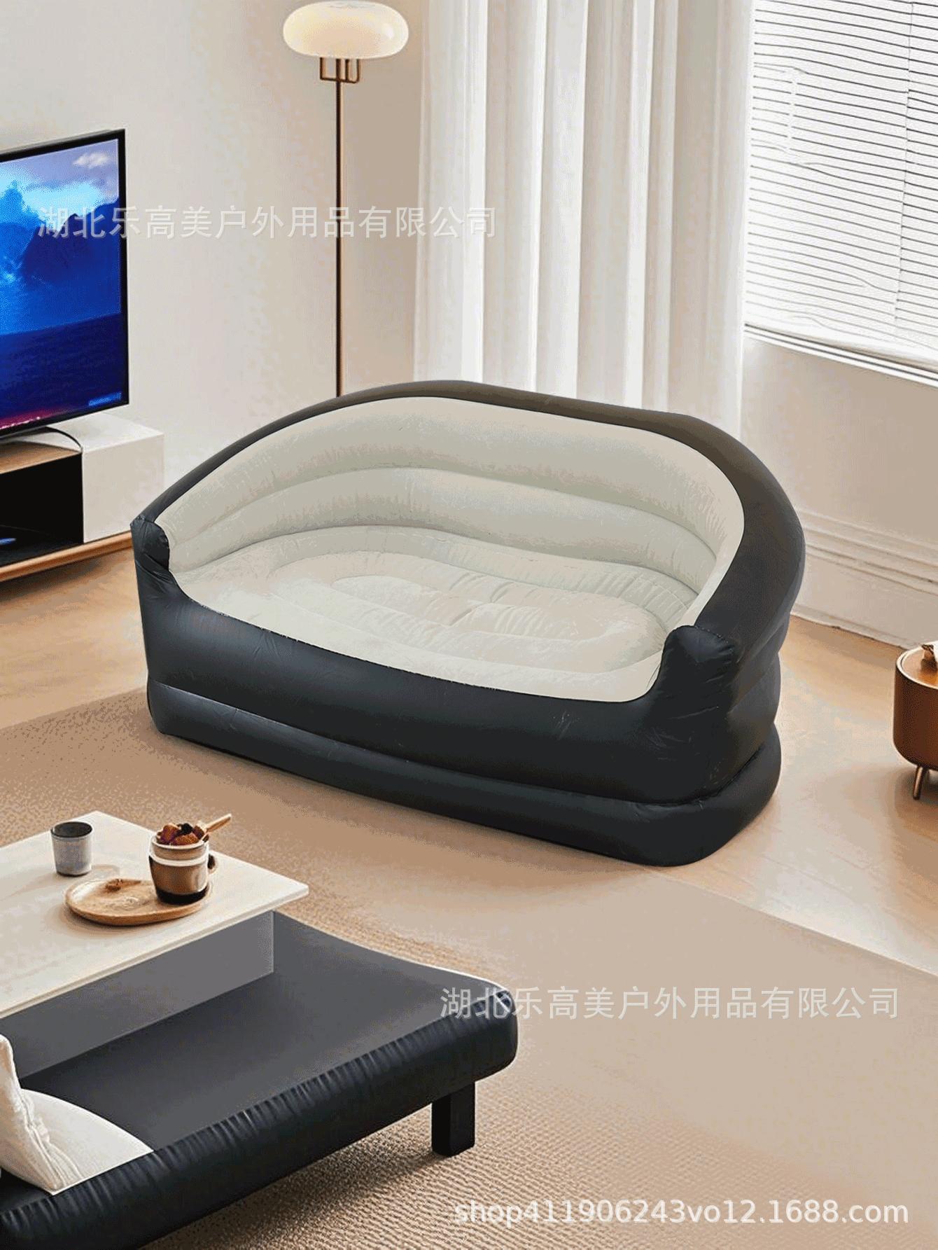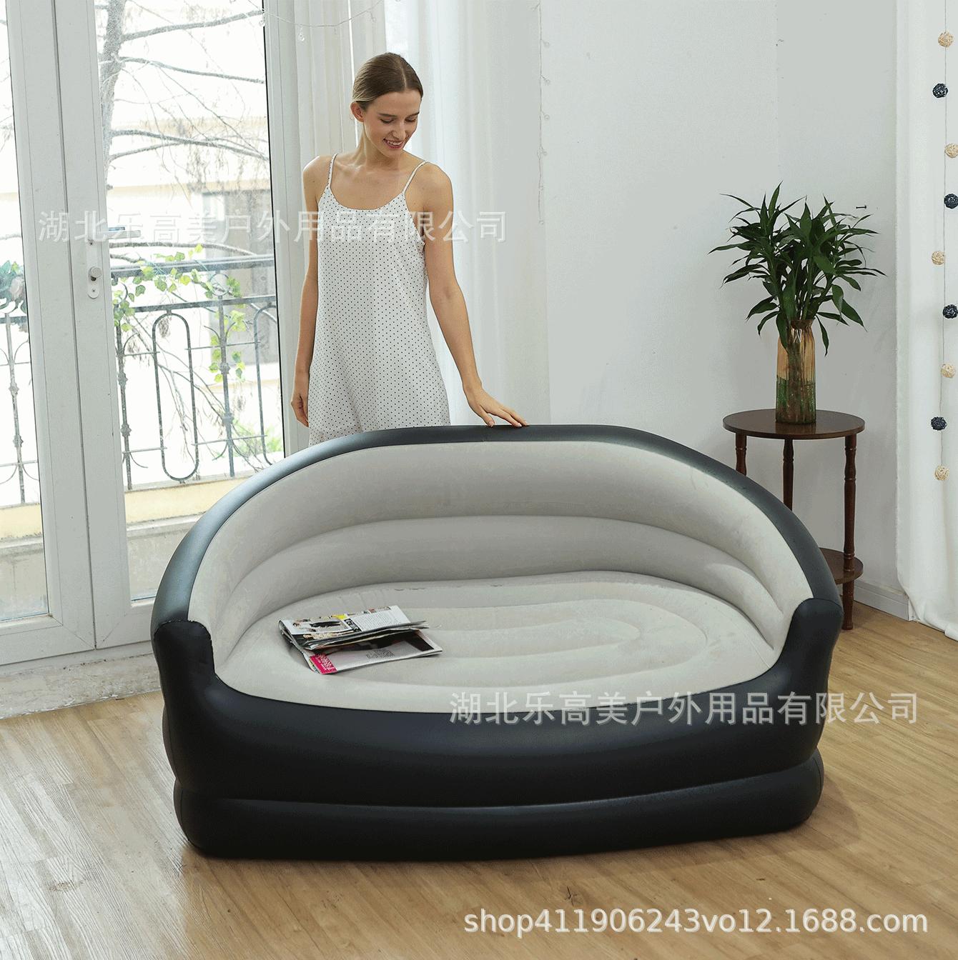 Sofá Doble Inflable Flocado Grueso Transfronterizo para Ocio, Sofá Cama Plegable Portátil para Exterior, Sillón Reclinable Perezoso para Almuerzo