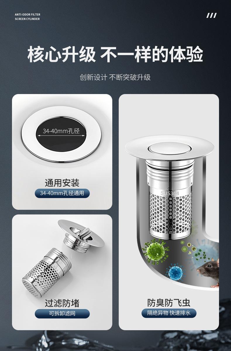 Desagüe de solapa de acero inoxidable 304 para fregadero, lavabo, tapón con fuga, desagüe de alcantarilla antirretorno, filtro de olores, transfronterizo
