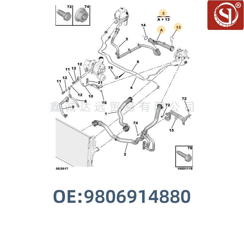 1351Vf/9806914880 Es Adecuado para Peugeot 3008 4008 5008 Tianyi C5 508 Bomba de Agua Tubo de Agua