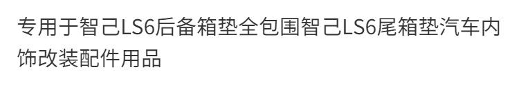 Dedicado a la alfombra de maletero Zhiji LS6 totalmente rodeada alfombra de caja trasera Zhiji LS6 accesorios de modificación interior de coche suministros