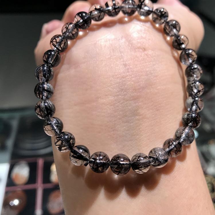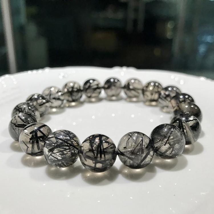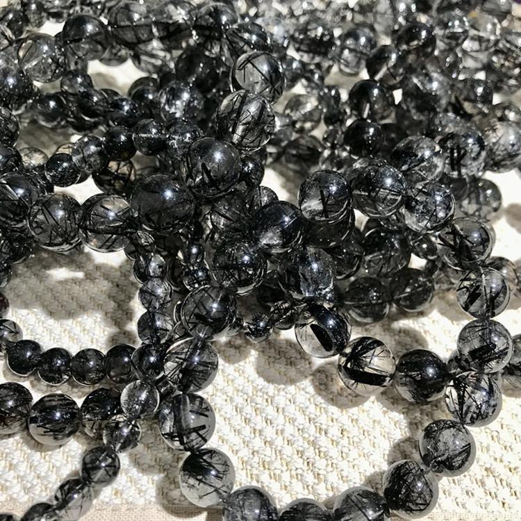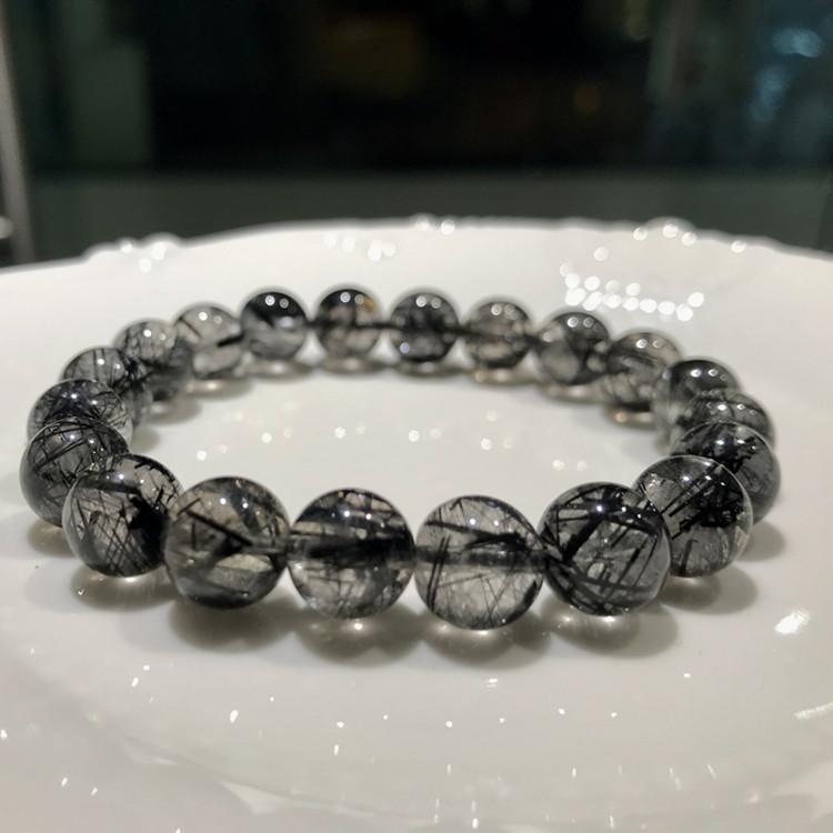 Pulsera de Cuentas Redondas de Cristal de Titanio para Cabello Negro Natural, Estilo Sencillo y de Moda para Hombres y Mujeres