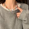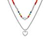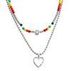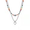 Collar de Corazón Calado con Cuentas Coloridas para Mujer Hip-Hop Hottie Doble Capa Elegante Cadena Clavícula Niche Accesorios de Alta Gama