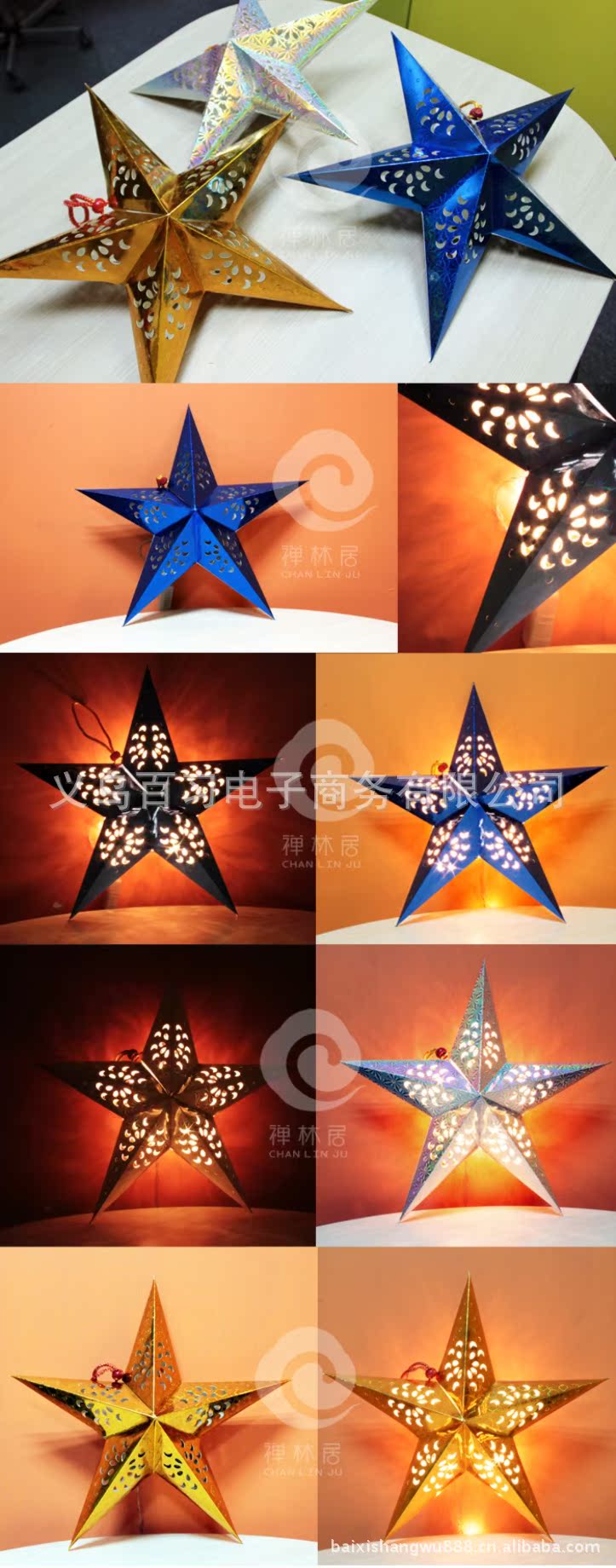Estrella de Cinco Puntas de Papel Láser de 45 cm Decoración de Techo de Barra Navidad Pantalla de Lámpara de Estrella Colorida