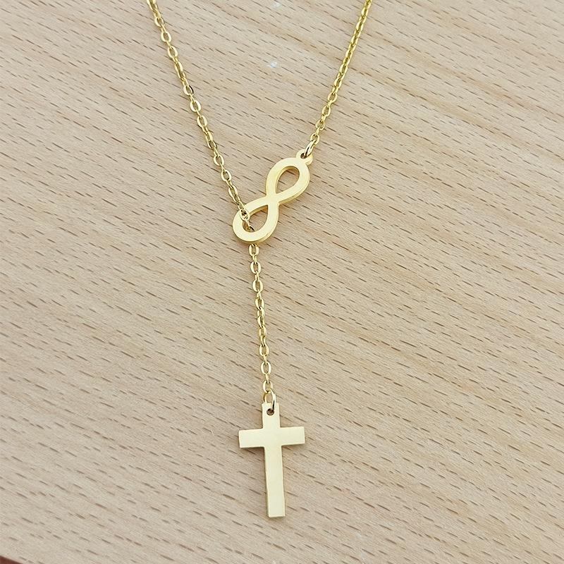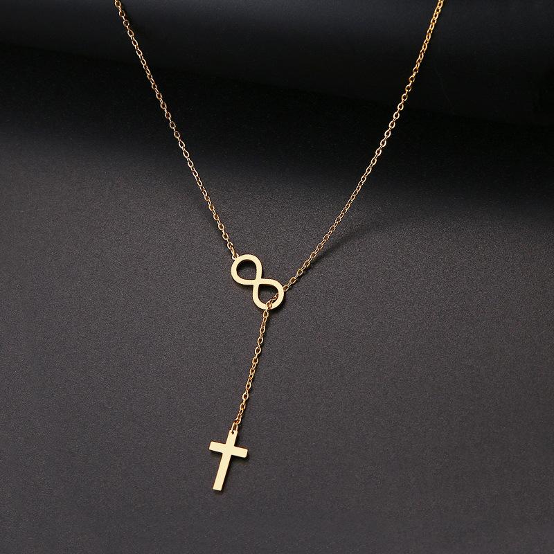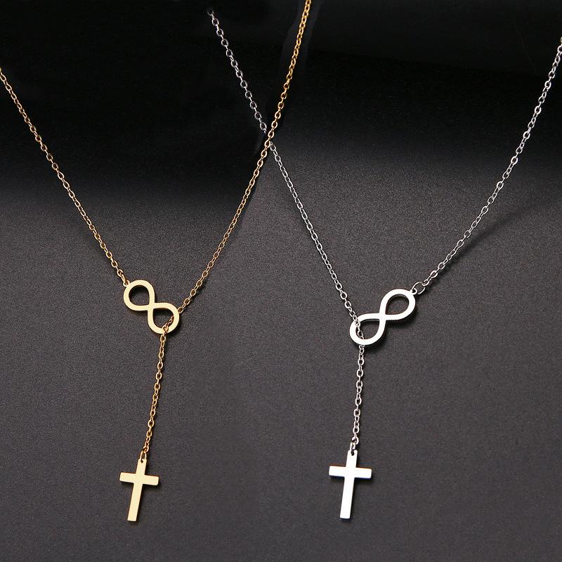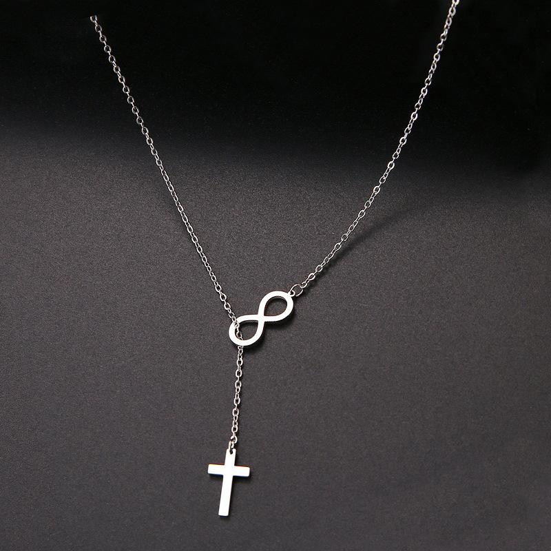 Collar con Doble Colgante de Acero Inoxidable Transfronterizo con Cruz en Forma de Ocho, Patrón Geométrico Simple, Acero de Titanio, Collar que No se Desvanece
