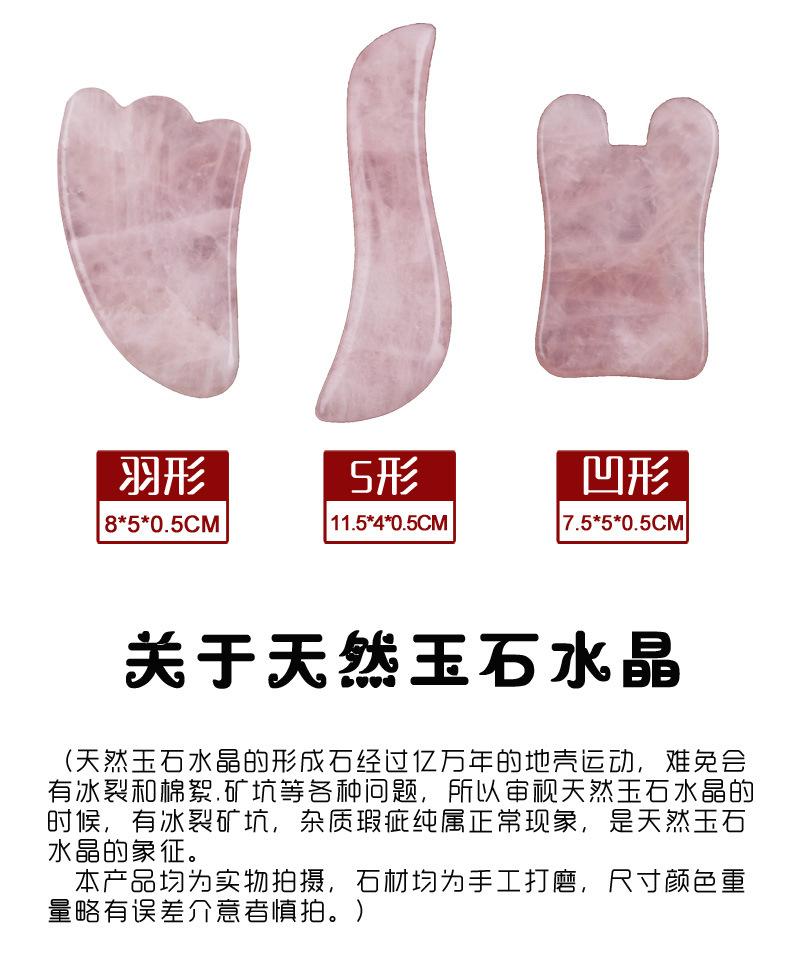 Set de Tabla de Raspado de Jade de Cuarzo Rosa Belleza Facial Cristal Tabla de Raspado Cuidado de la Salud Meridiano Palo de Masaje