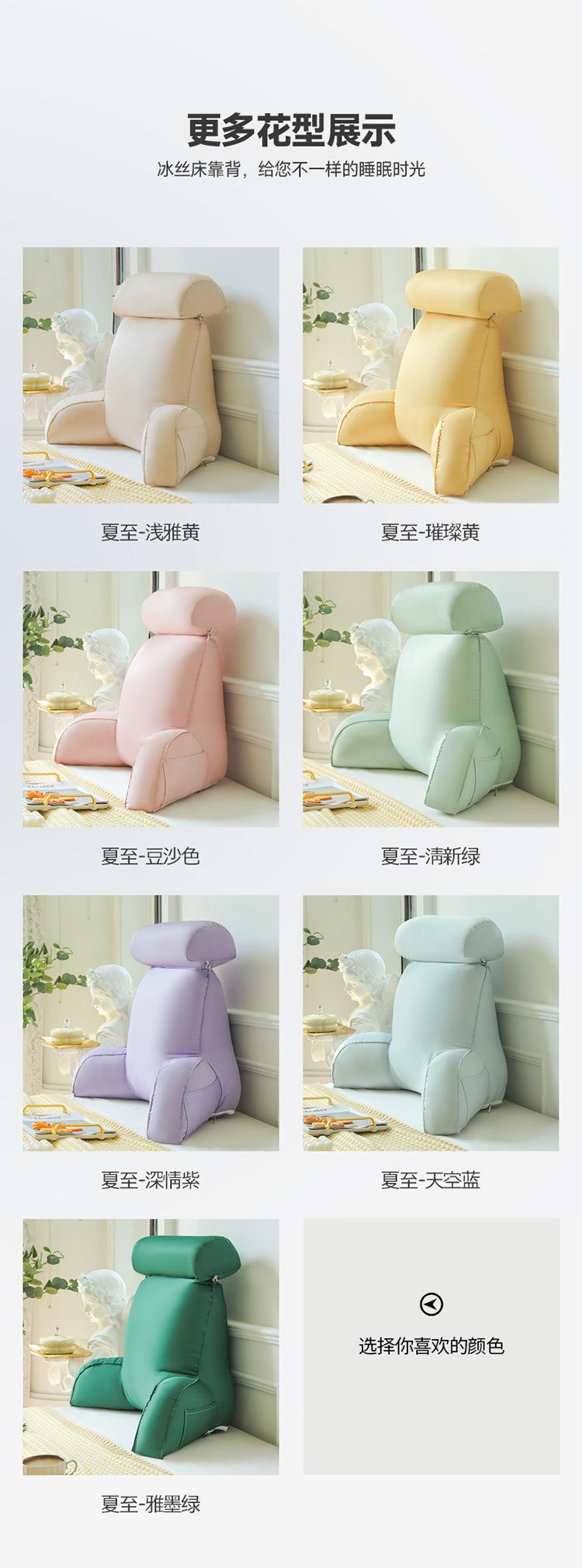 2024 Nuevo Cojín Fresco de Verano Seda de Hielo Cojín de Cabecera Protección de Cintura Respaldo Removible y Lavable Artefacto de Dormitorio Protección de Cintura Color Sólido