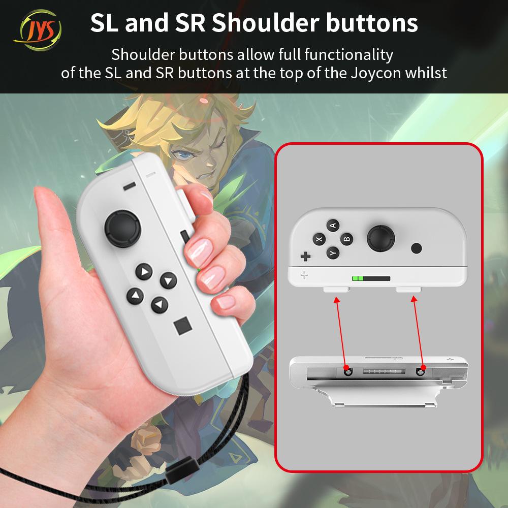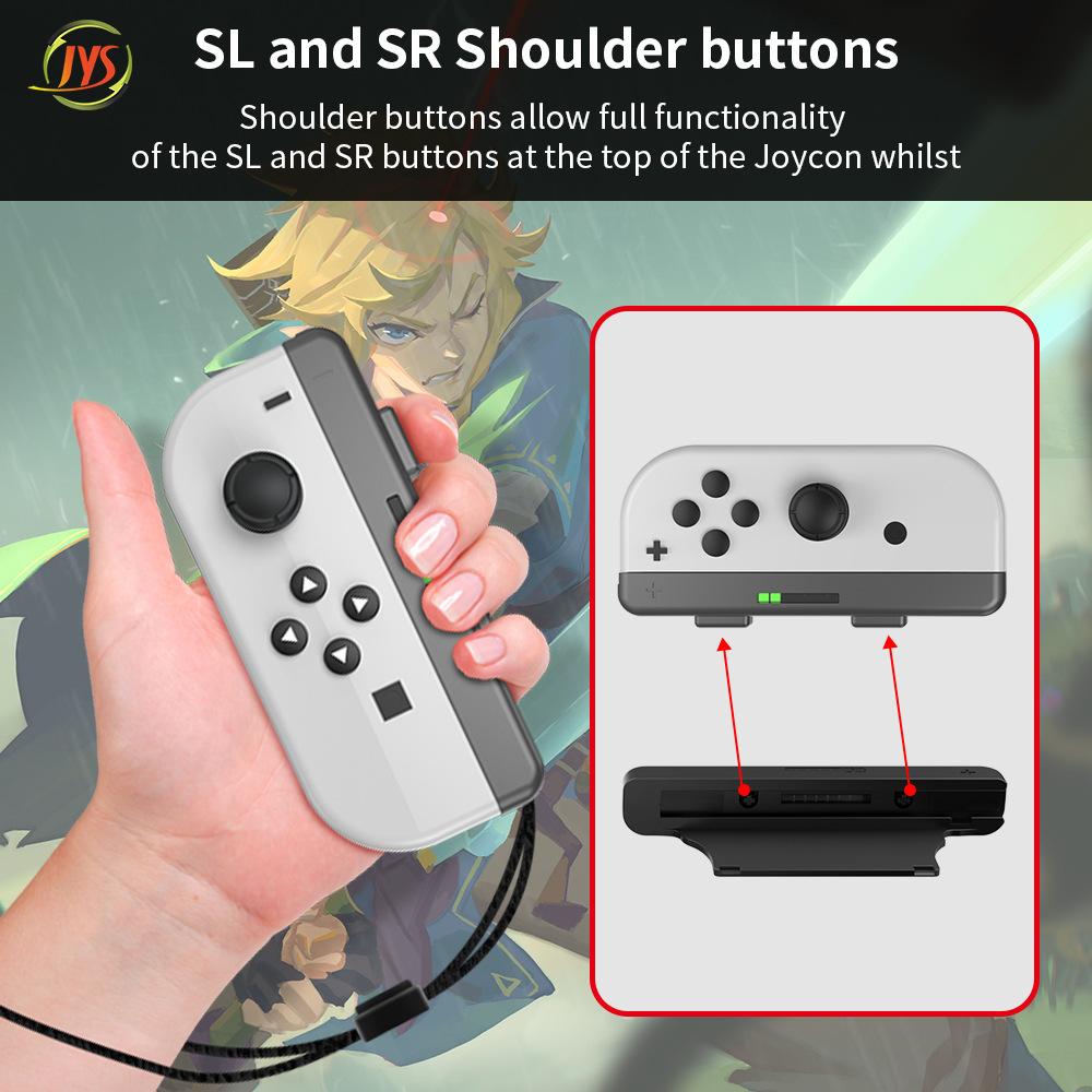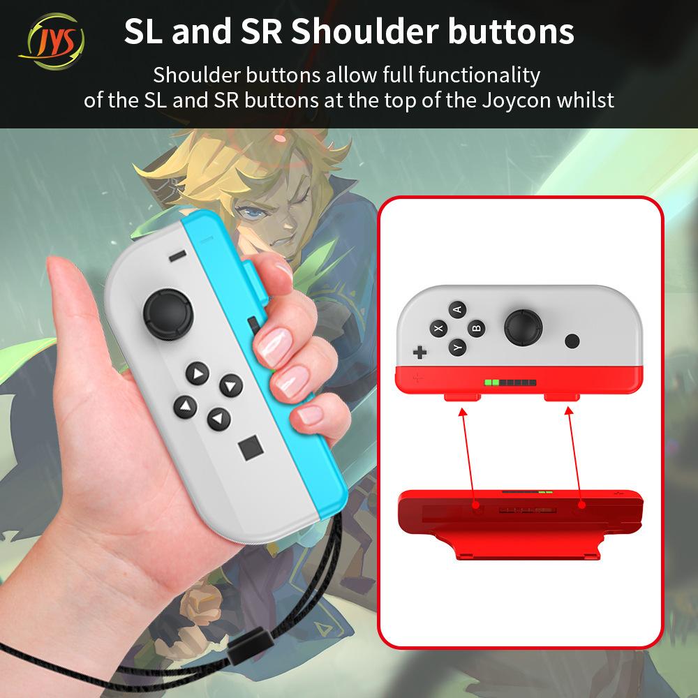 * El agarre tiene un botón superior elevado para el Joy-Con que permite la funcionalidad completa del SL y SR