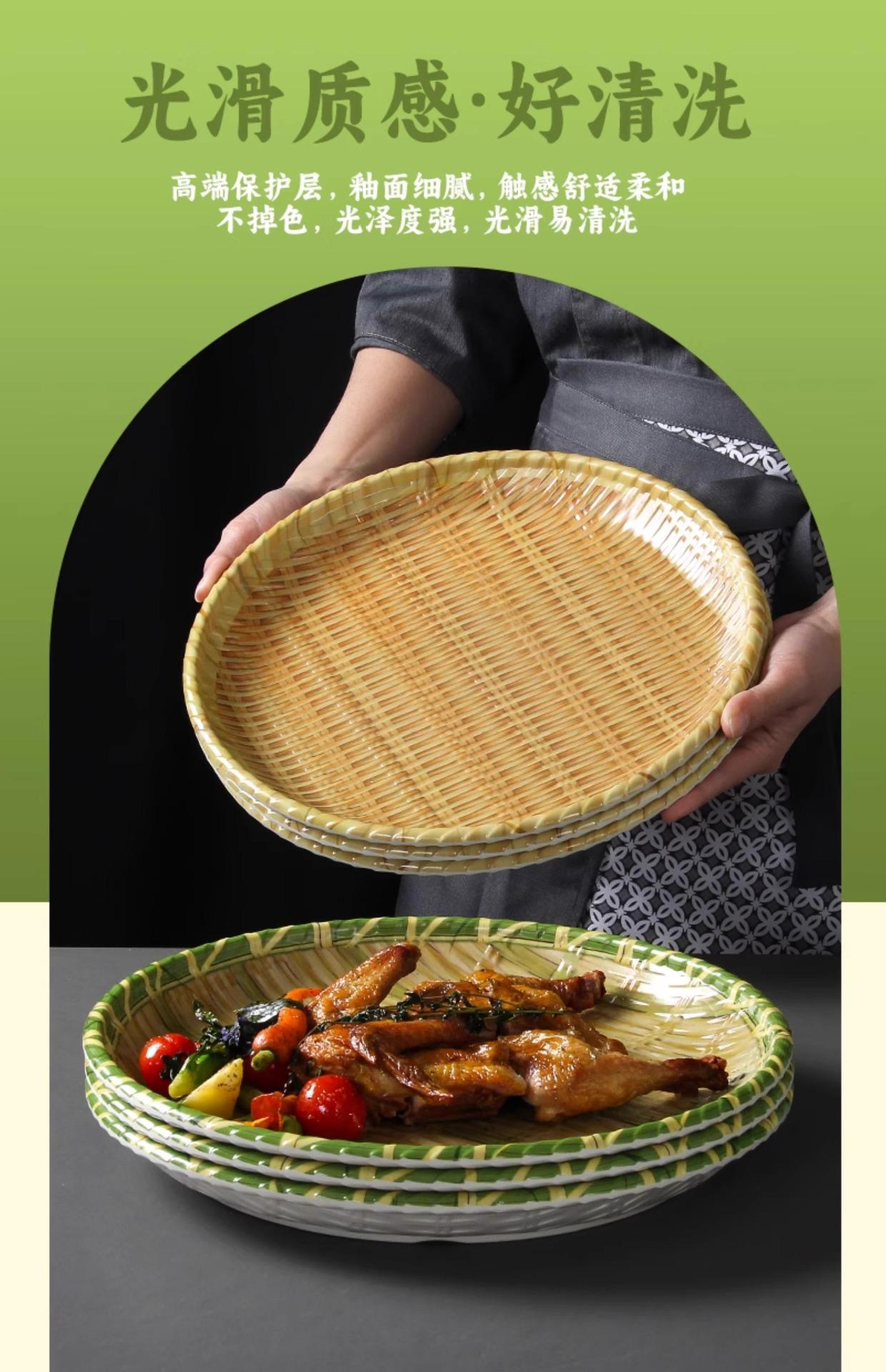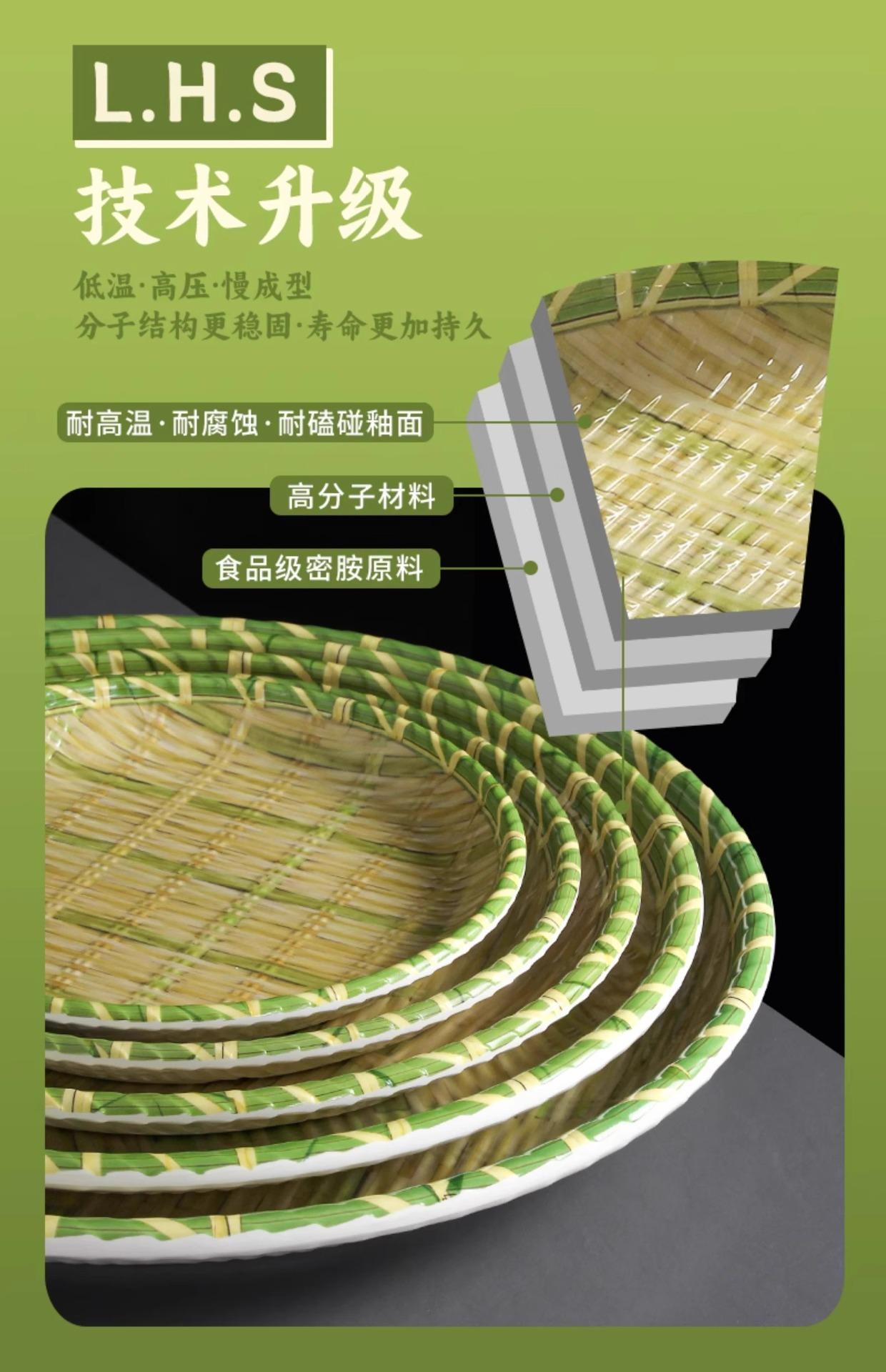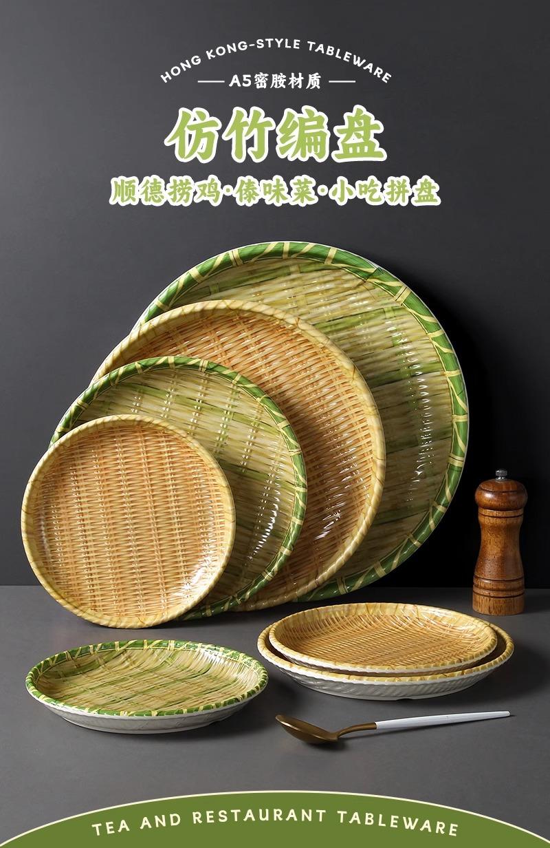 Plato para Hot Pot Imitación Bambú Plato para Restaurante de Barbacoa Vajilla Creativa Melamina Plato para Snack Plato Recogedor Plato Exquisito para Plato Frío