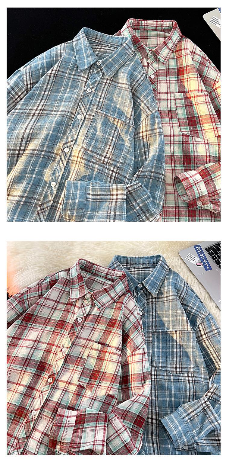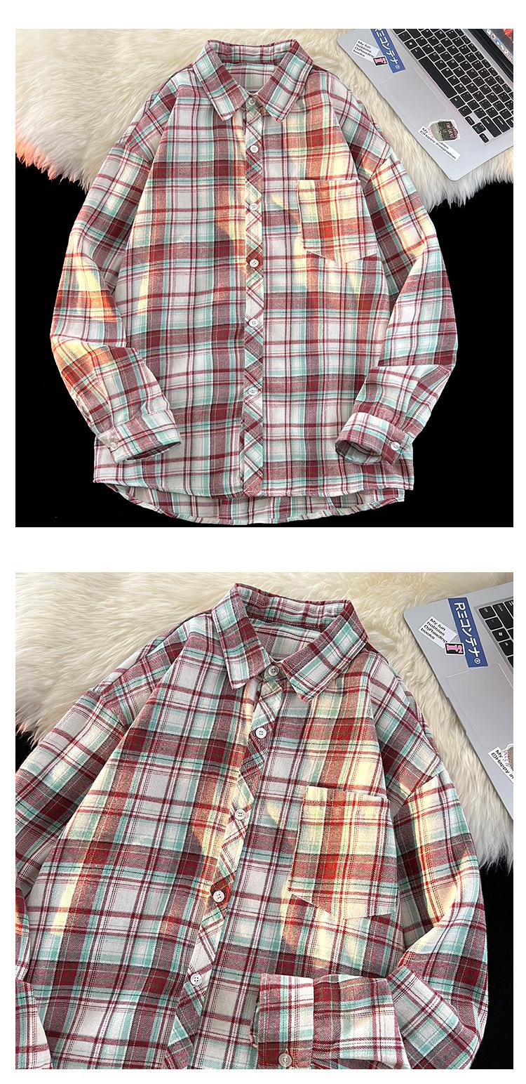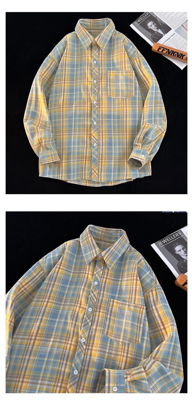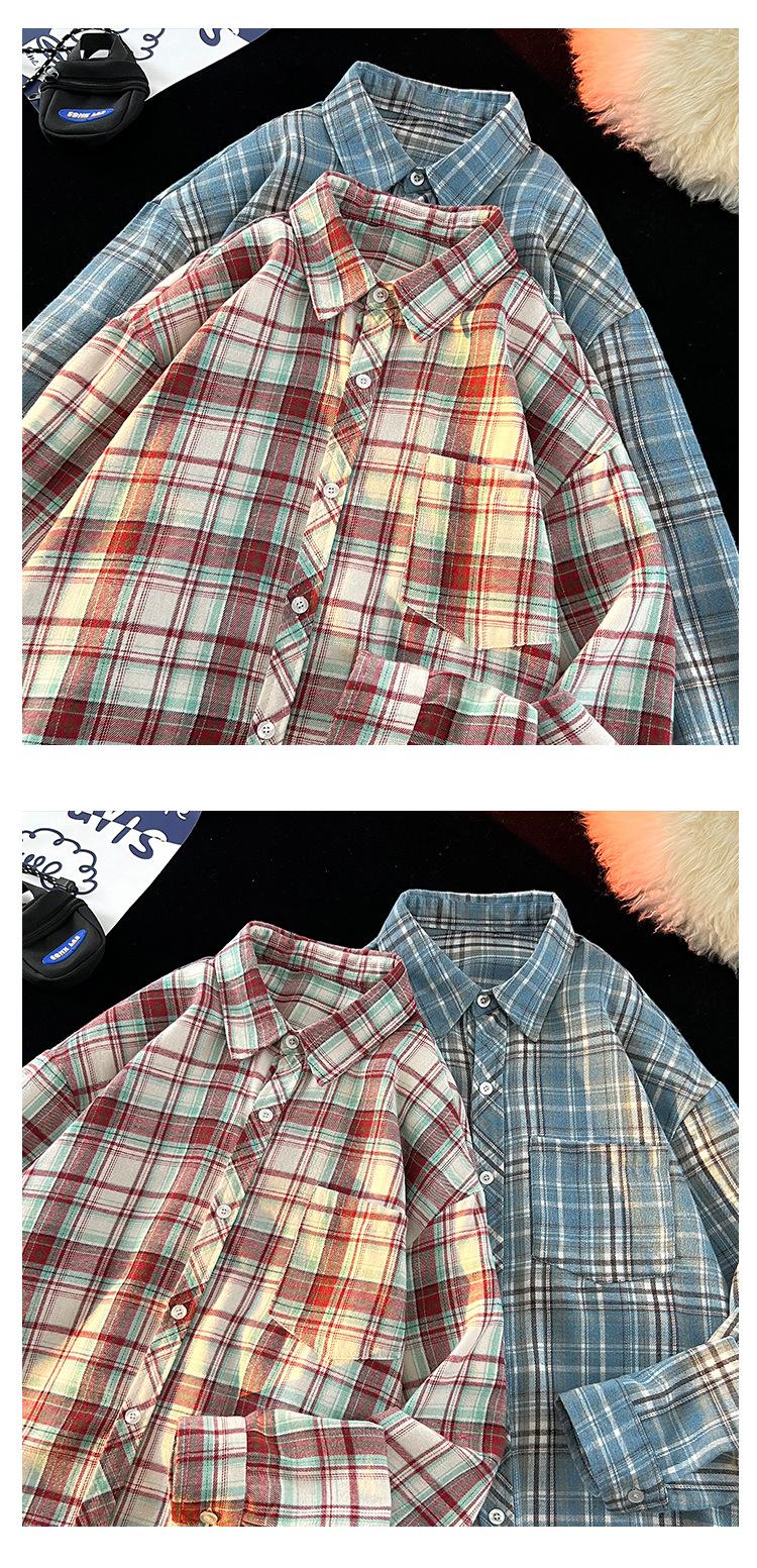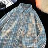 Camisa a cuadros nueva de primavera y otoño estilo coreano moderna casual juvenil de manga larga estilo Hong Kong Ins versátil cuello vuelto camisa de hombre