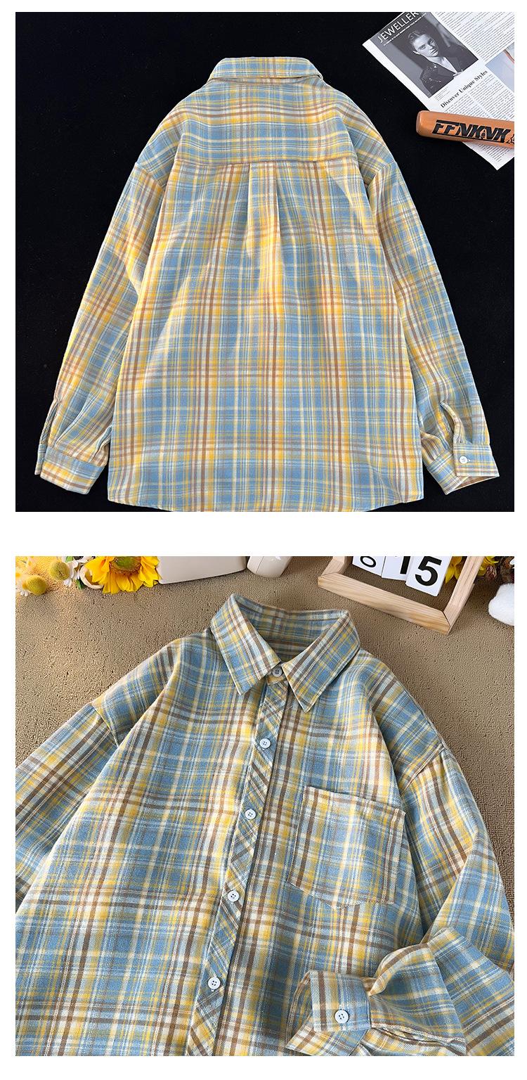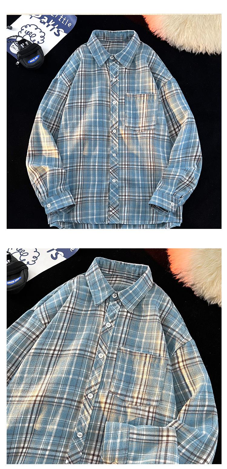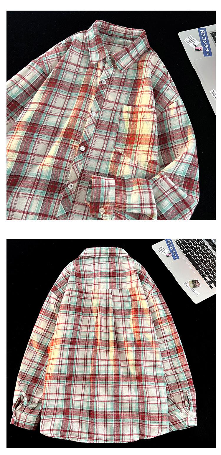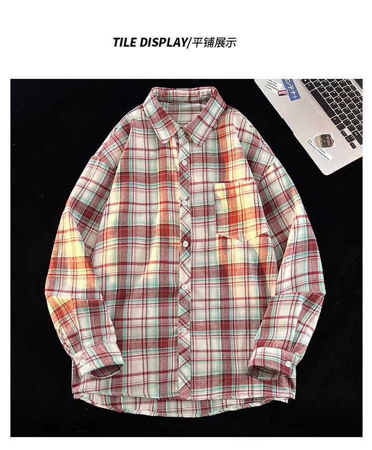 Camisa a cuadros nueva de primavera y otoño estilo coreano moderna casual juvenil de manga larga estilo Hong Kong Ins versátil cuello vuelto camisa de hombre