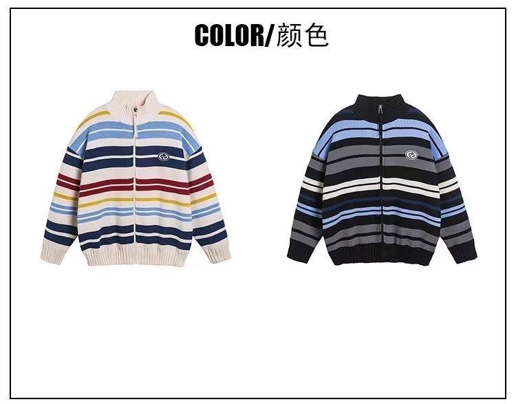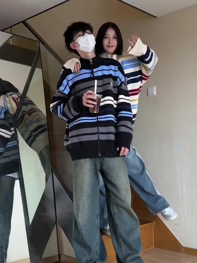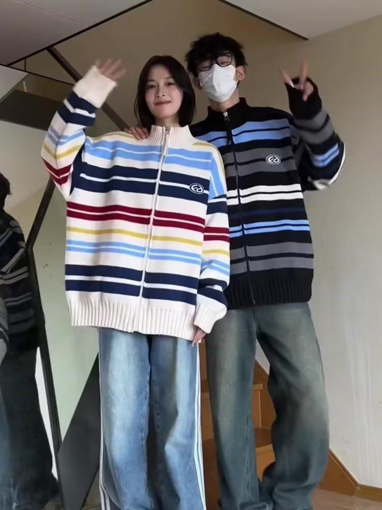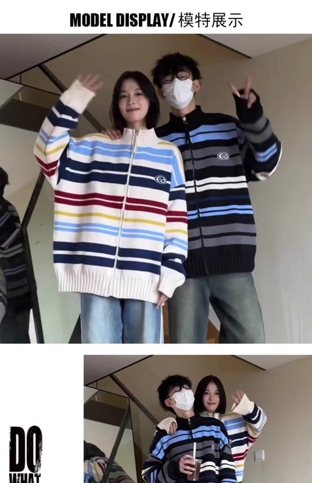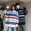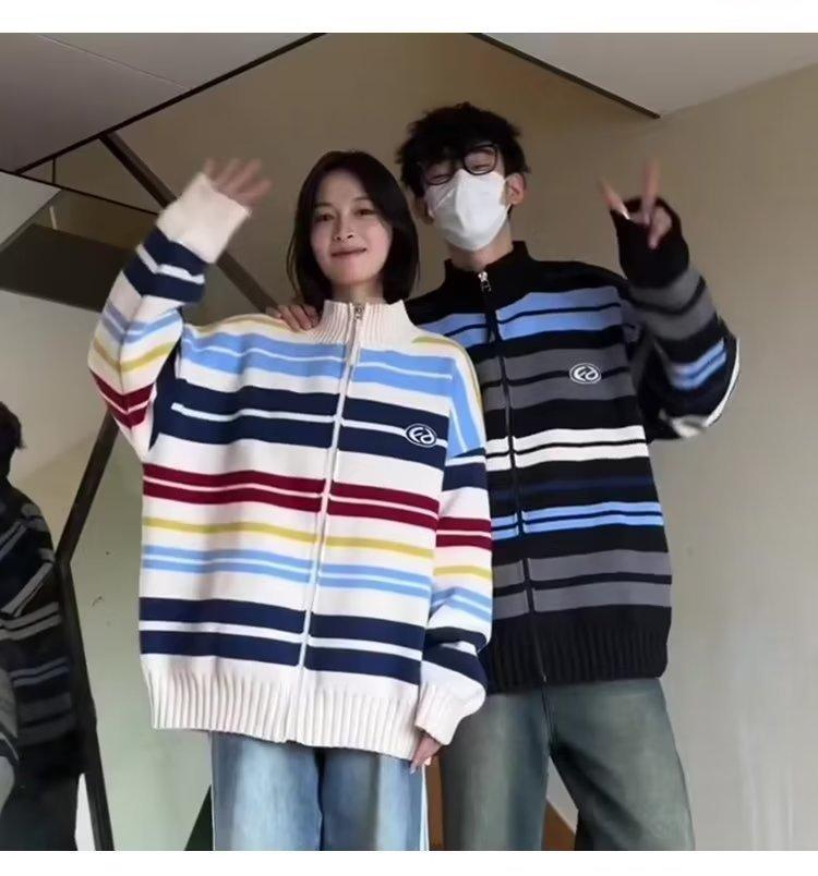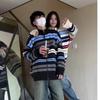 Compra Suéter de cuello alto a rayas con combinación de colores para hombre y mujer, marca de moda, suéter para pareja, holgado, casual, otoño e invierno, abrigo holgazán al por mayor en Joom.pro