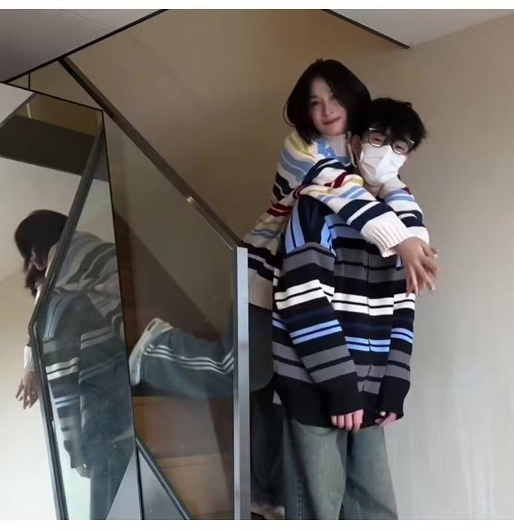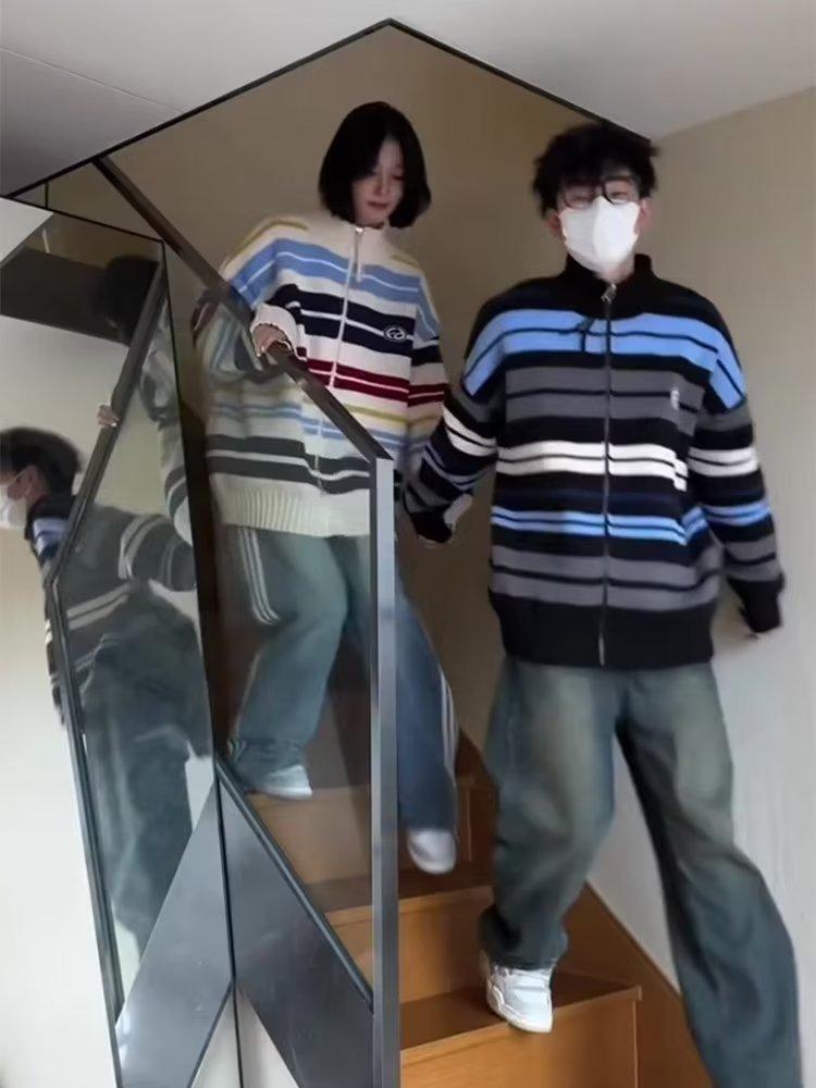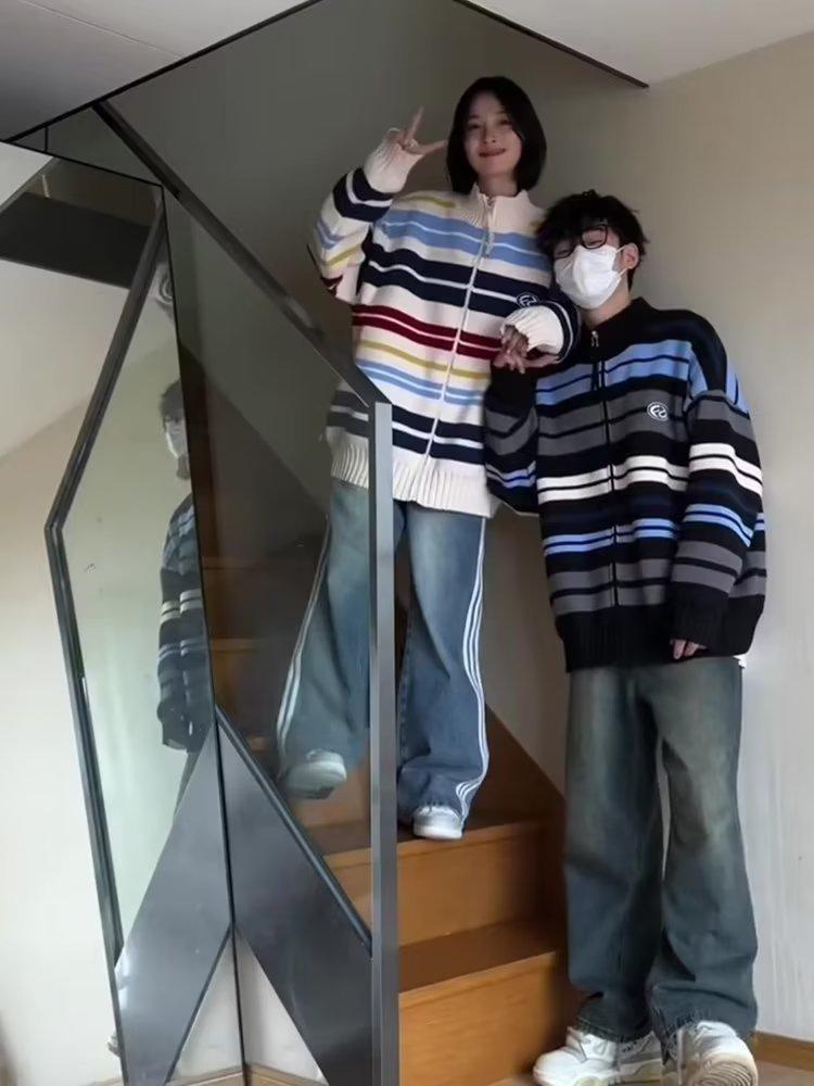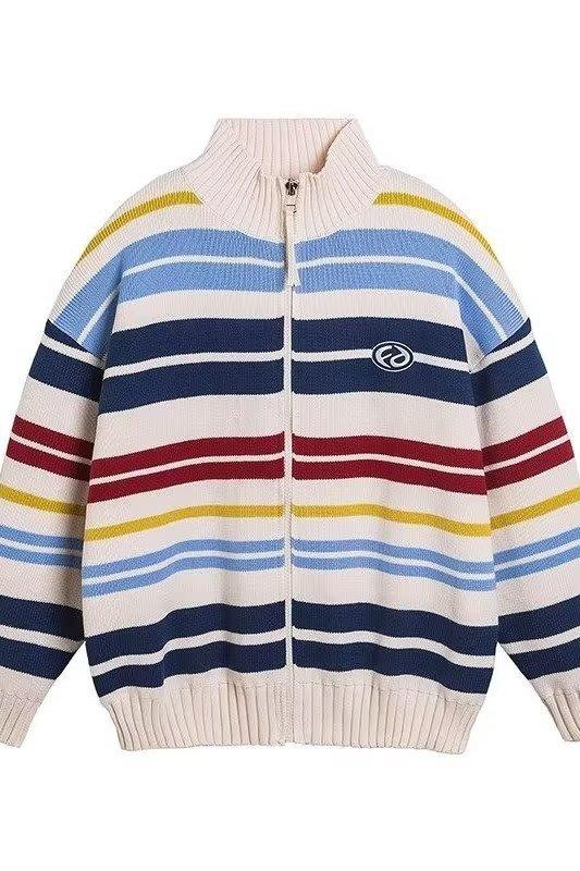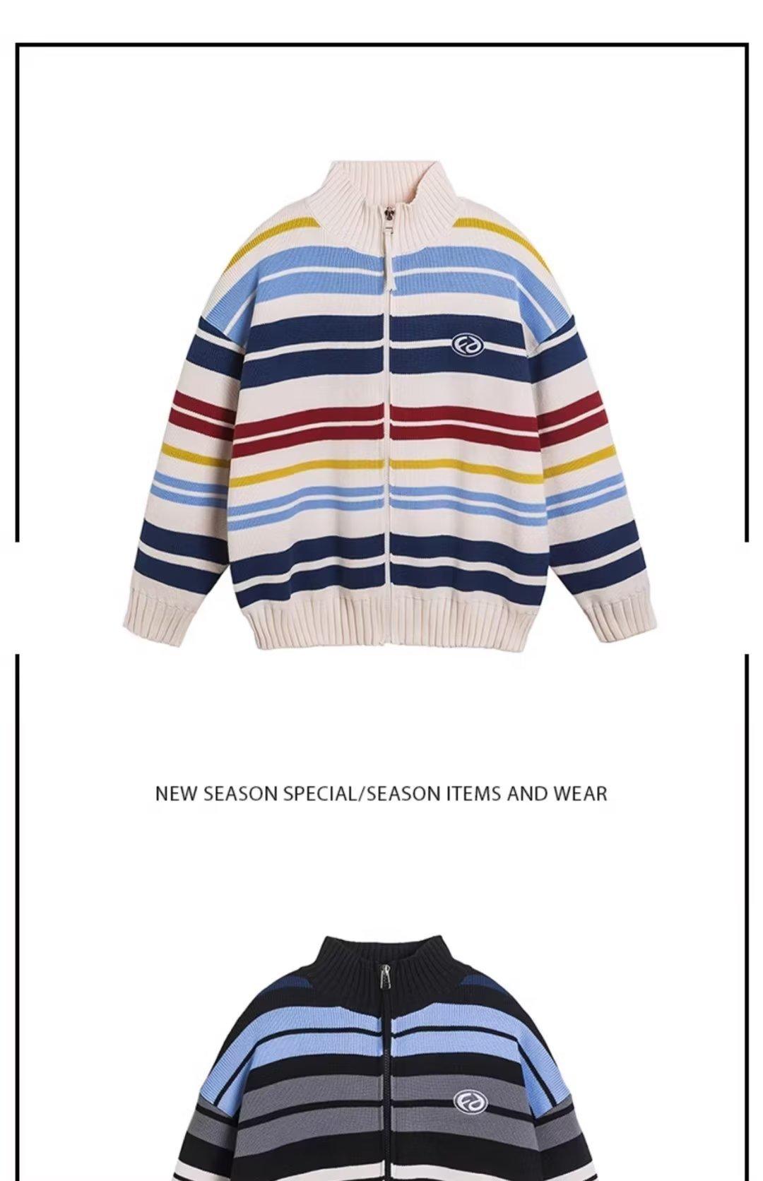 Compra Suéter de cuello alto a rayas con combinación de colores para hombre y mujer, marca de moda, suéter para pareja, holgado, casual, otoño e invierno, abrigo holgazán al por mayor en Joom.pro