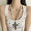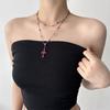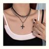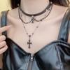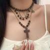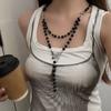 Collar de Cuentas de Cruz Oscura Retro Genial Cadena para Suéter