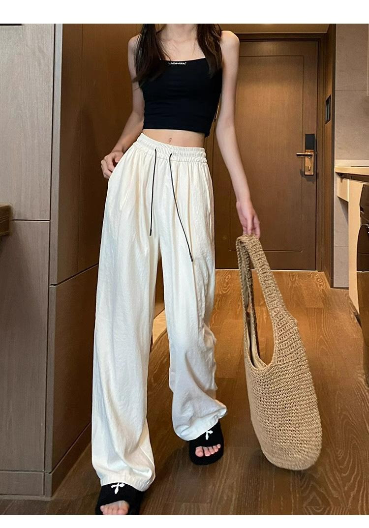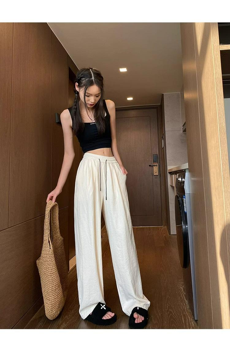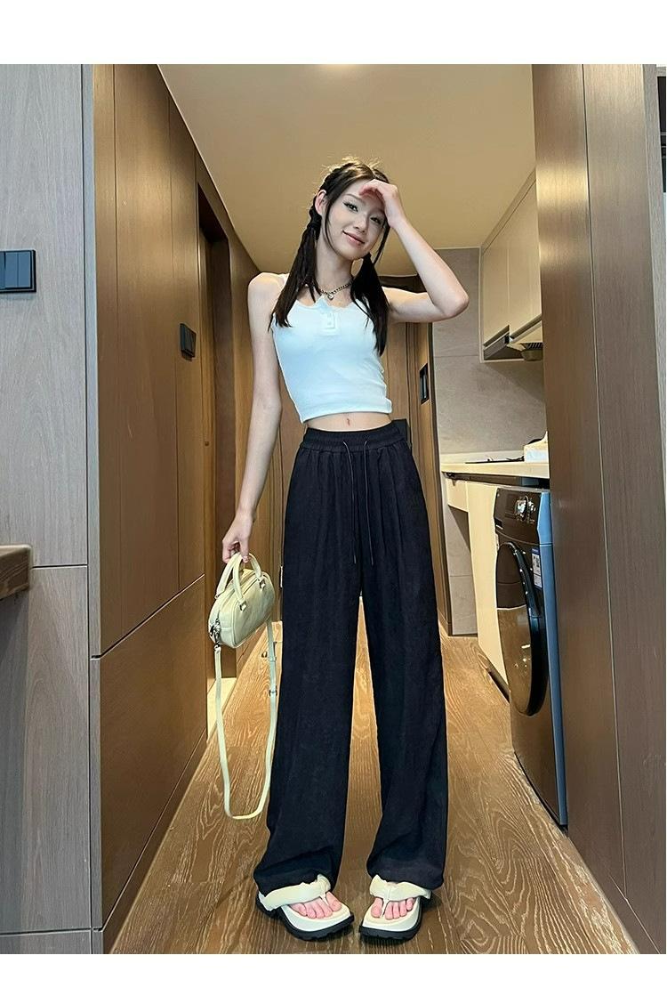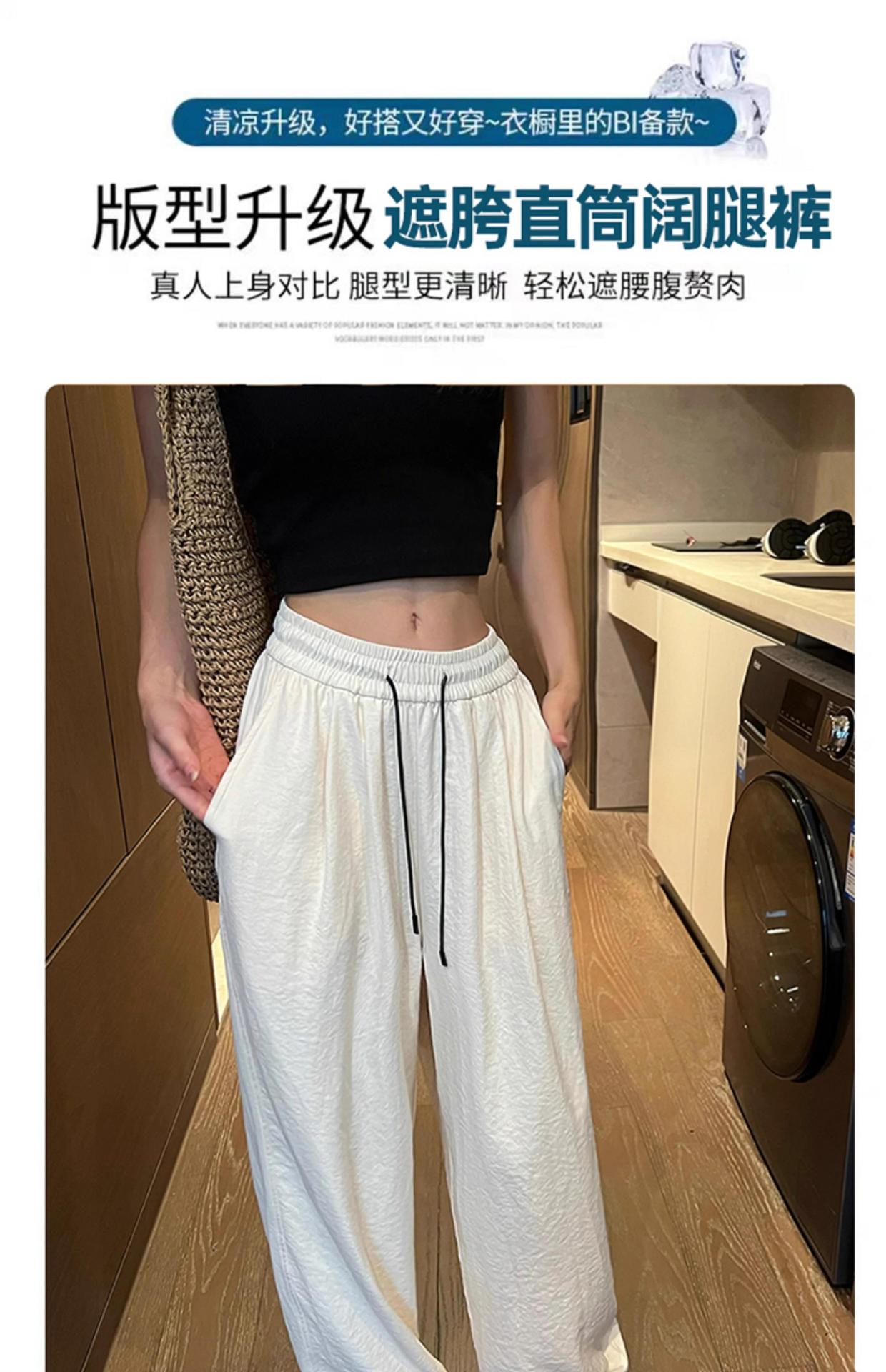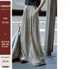 Pantalones de Pierna Ancha para Mujer, Primavera y Otoño Delgados de Cintura Alta de Pierna Recta Drapeados Sueltos Casuales