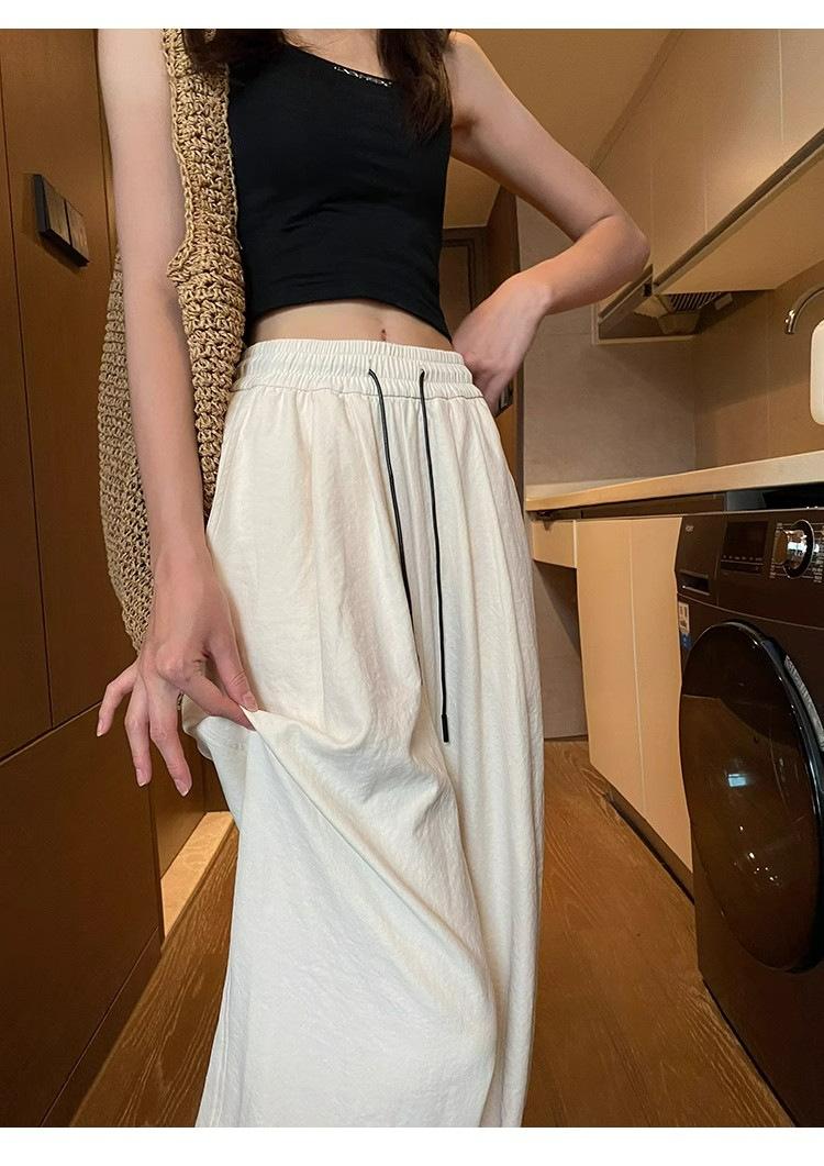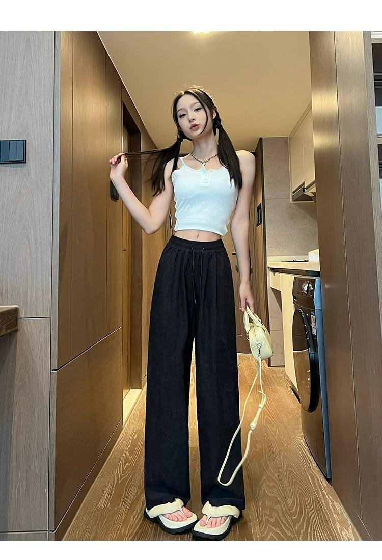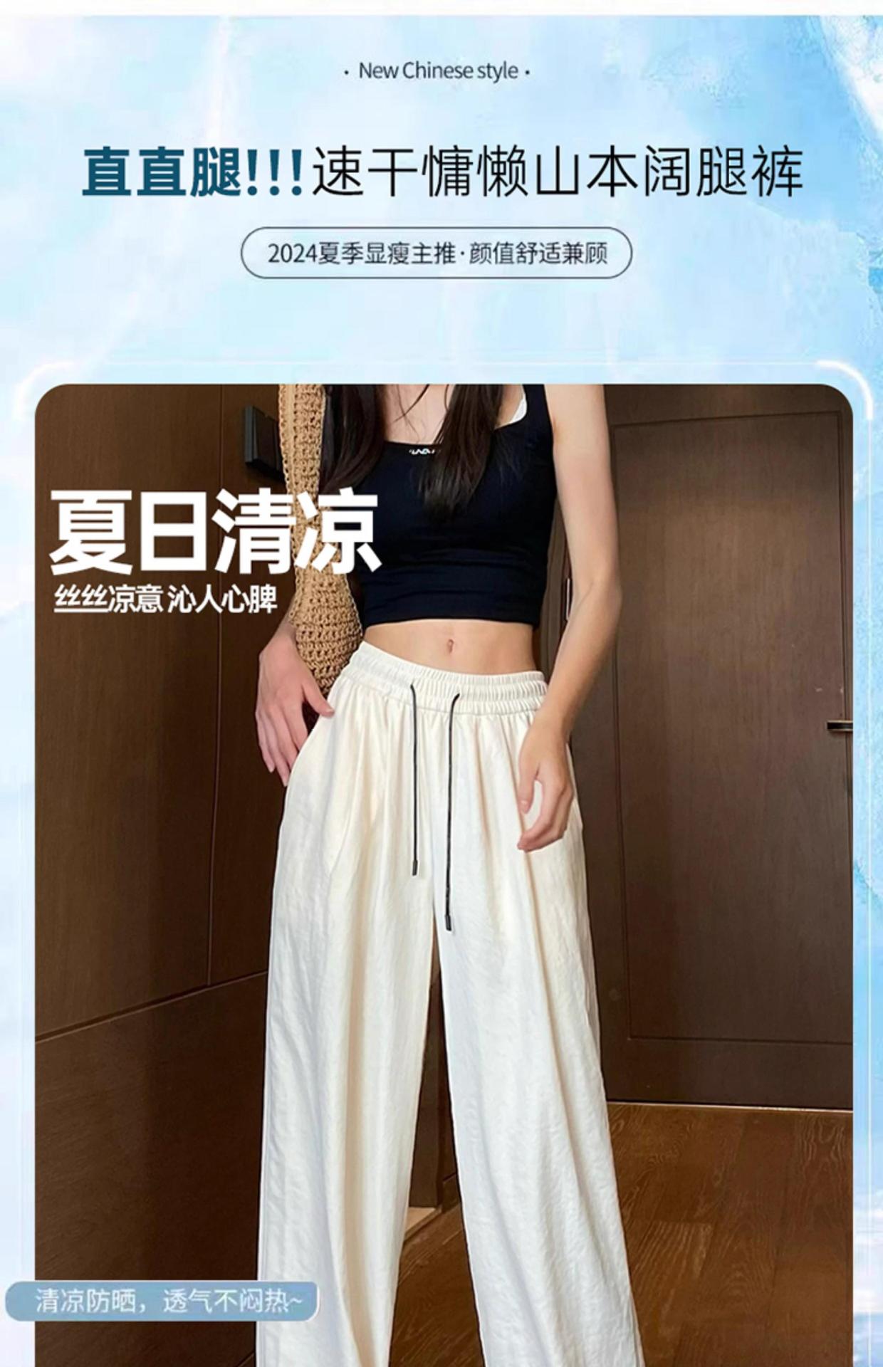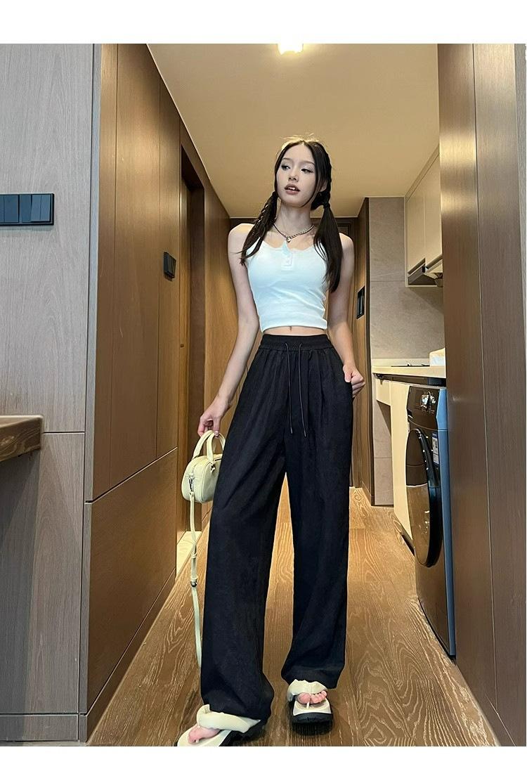 Pantalones de Pierna Ancha para Mujer, Primavera y Otoño Delgados de Cintura Alta de Pierna Recta Drapeados Sueltos Casuales