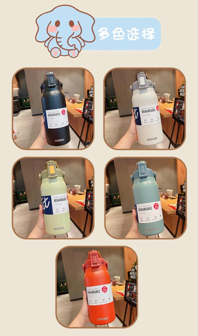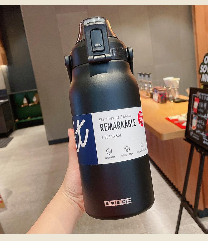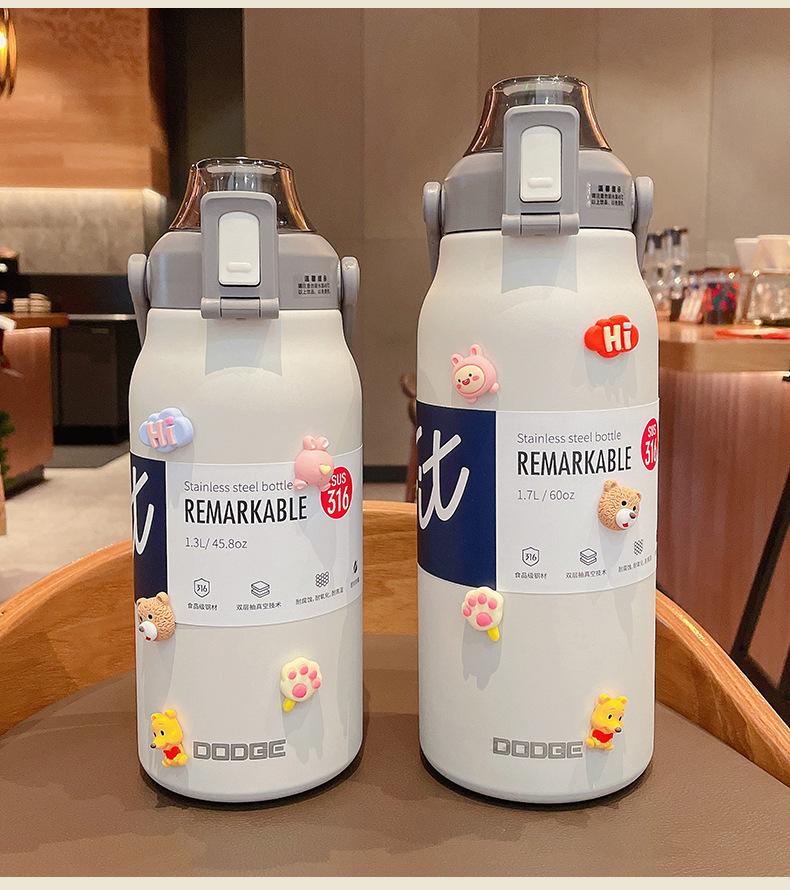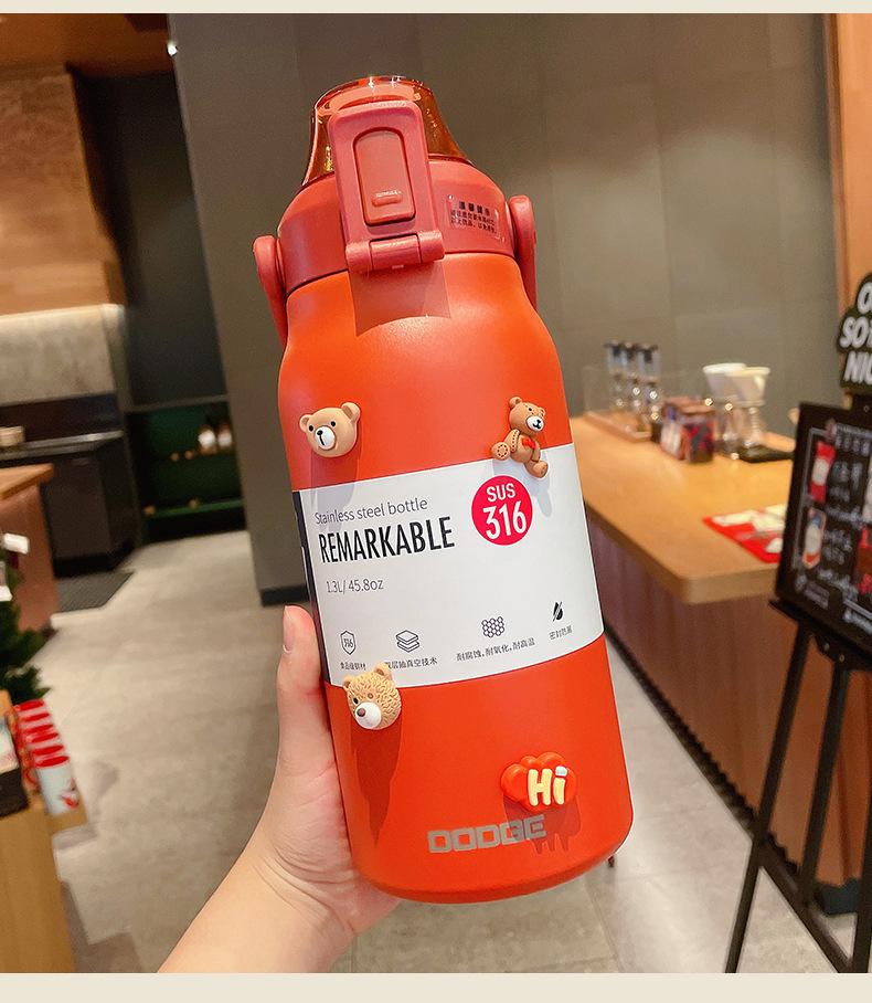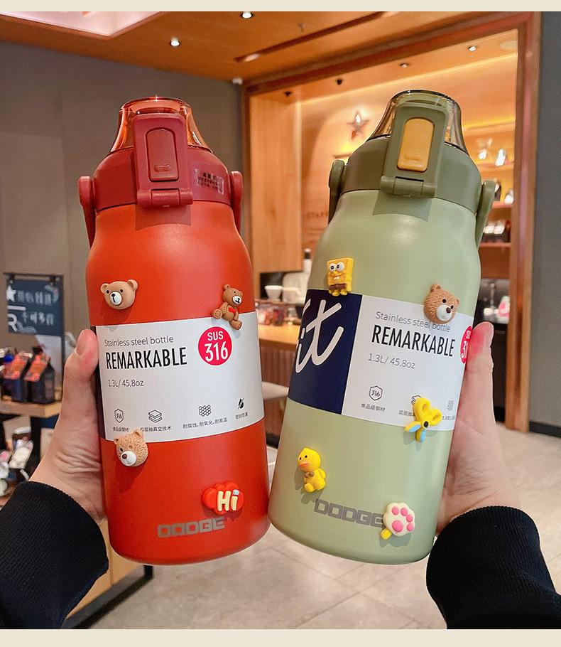 Termo deportivo de gran capacidad con pajita, bolsa de transporte, acero inoxidable 316, para exteriores, hervidor de agua, taza de viaje para niños
