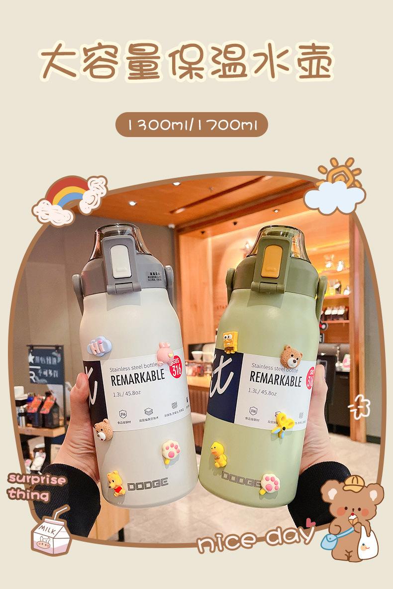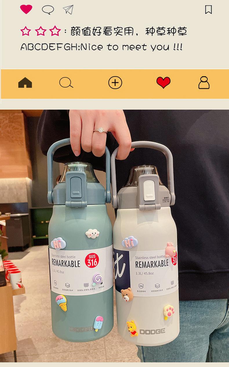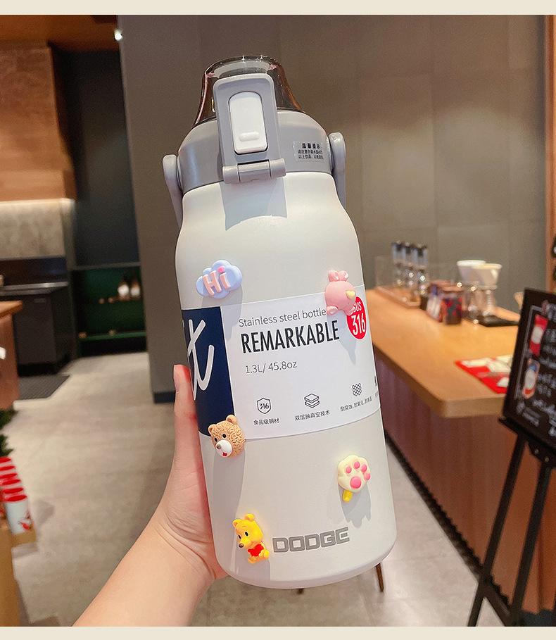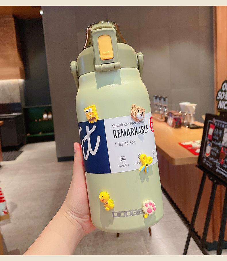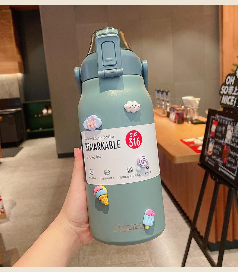 Termo deportivo de gran capacidad con pajita, bolsa de transporte, acero inoxidable 316, para exteriores, hervidor de agua, taza de viaje para niños