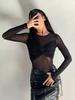 Comercio Exterior Elegante Nuevo Primavera y Verano Malla Empalmada Sexy Sexy Transparente Manga Larga Torcido Ajustado Mono