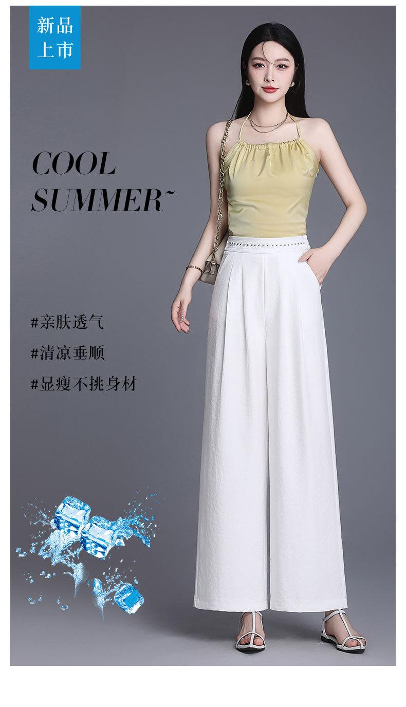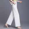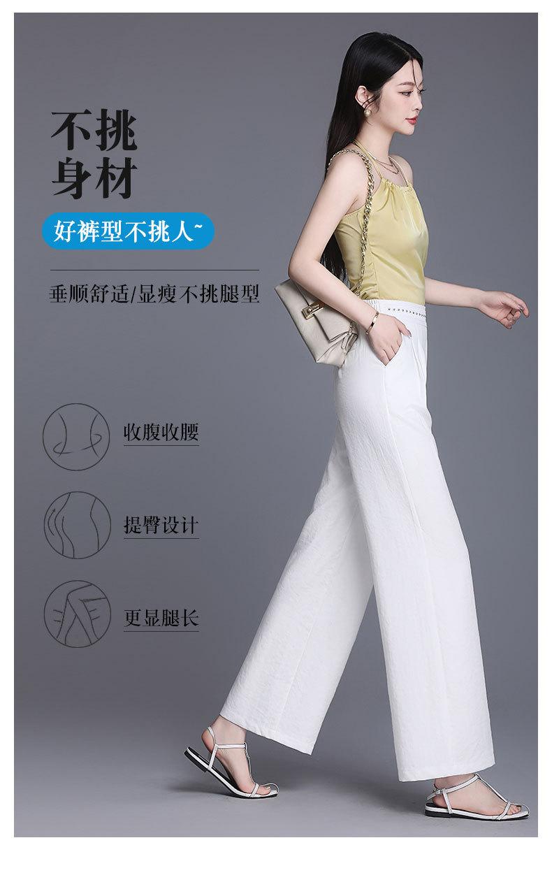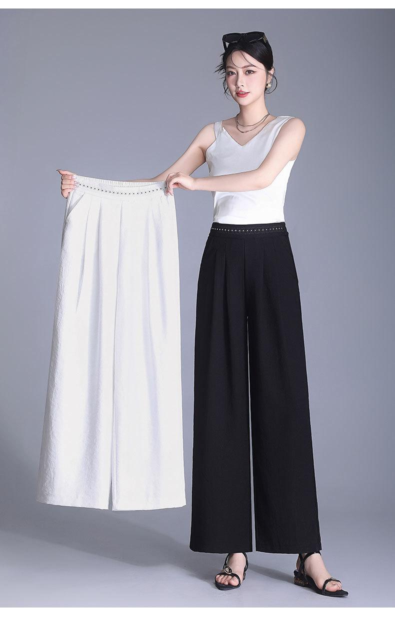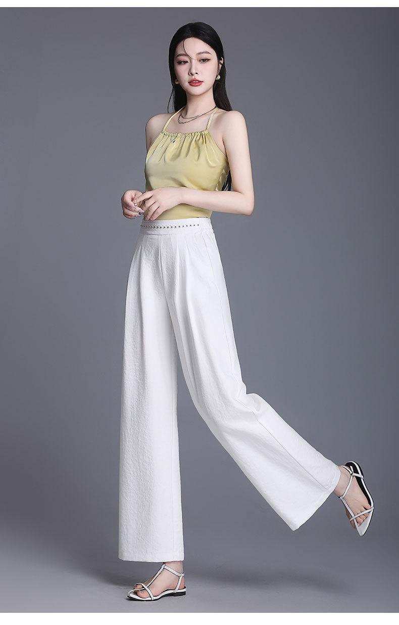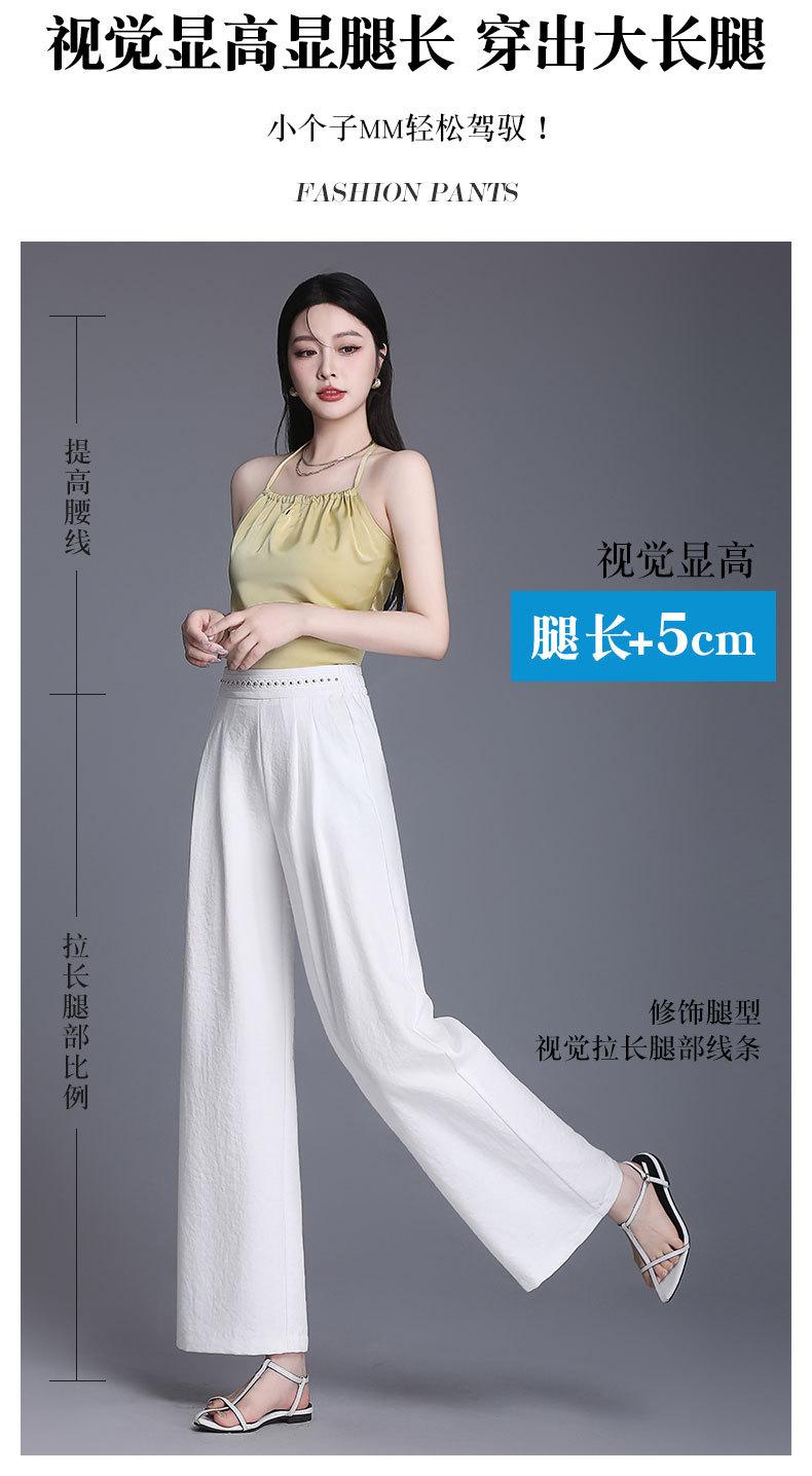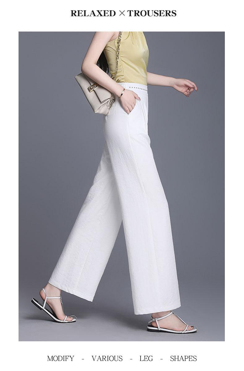 2025 Nuevo Estilo Pantalones Rectos Holgados Pantalones Largos Casuales Blanco Lino Pantalones de Pierna Ancha Pantalones Delgados de Verano para Mujer