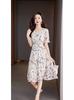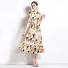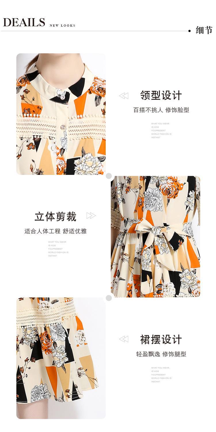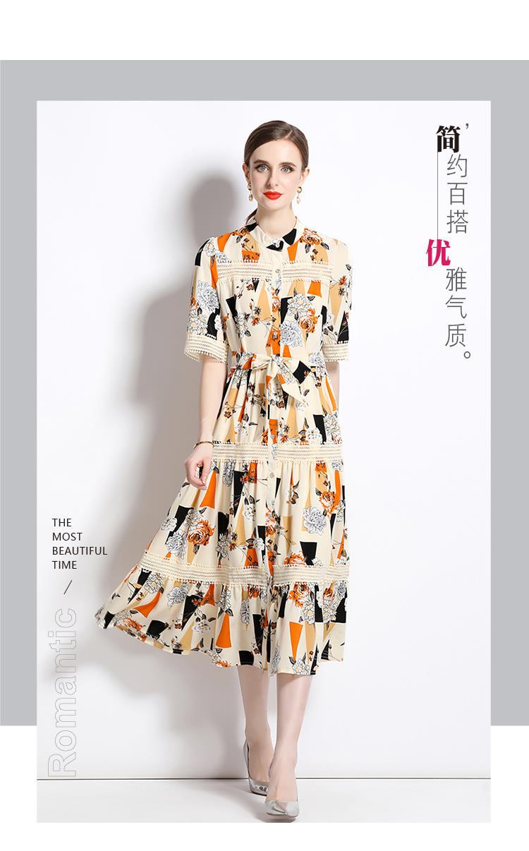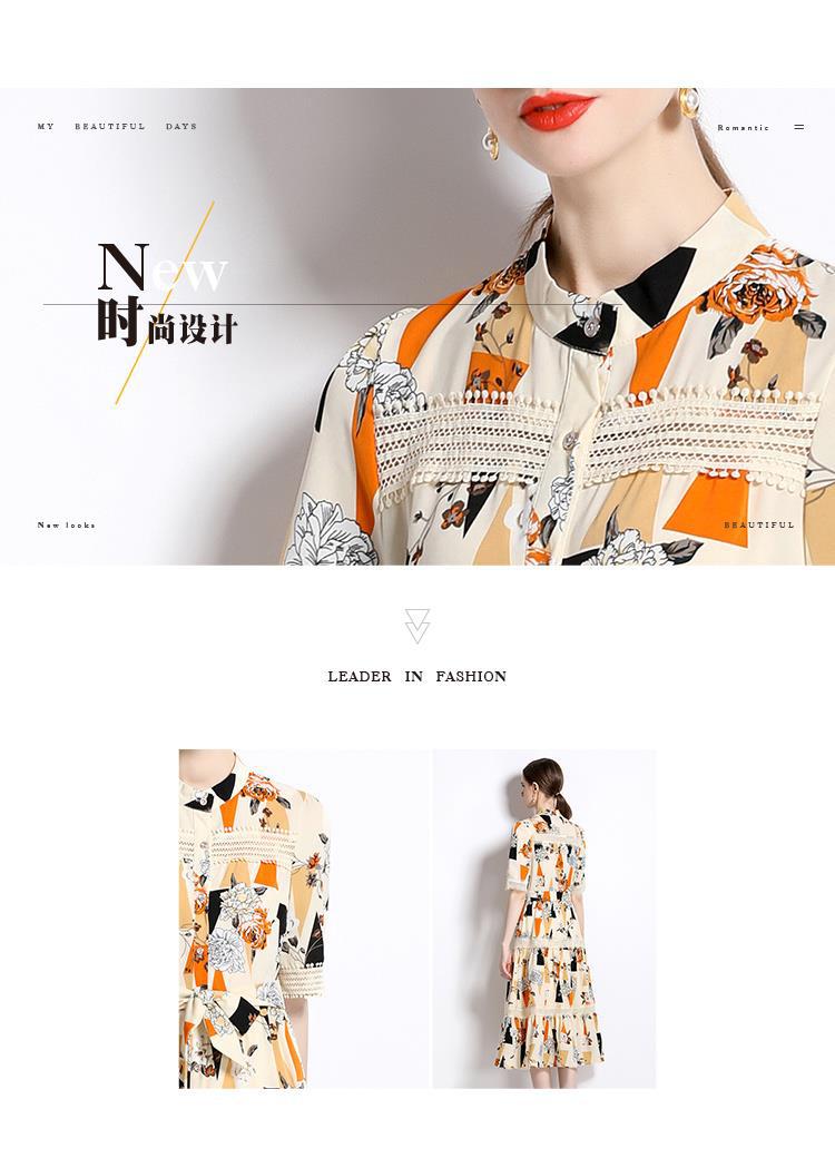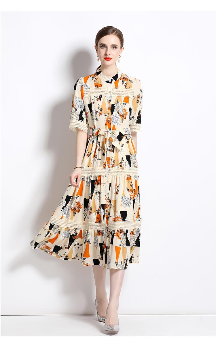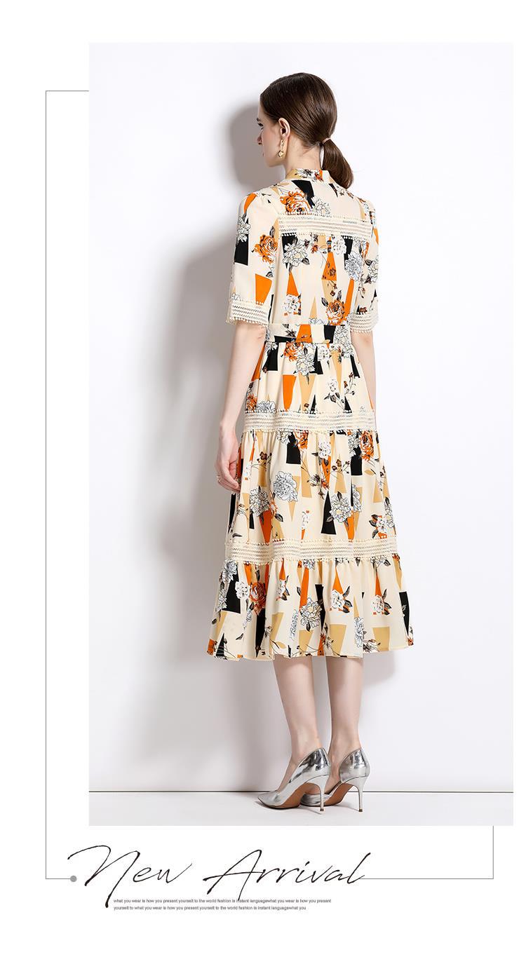 Foto real en stock verano cintura adelgazante hueco temperamento manga corta vestido de mujer chic impresionante vestido camisero estampado