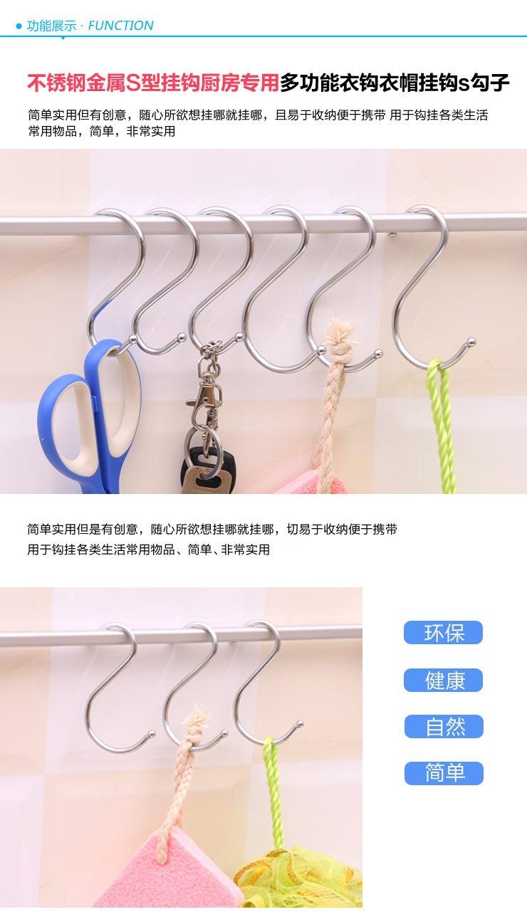 Gancho de Puerta Metálico de Acero Inoxidable en Forma de S Cocina Baño Colgante de Pared Sin Rastro Sin Clavos Gancho S Colgador de Ropa Gancho para Abrigos