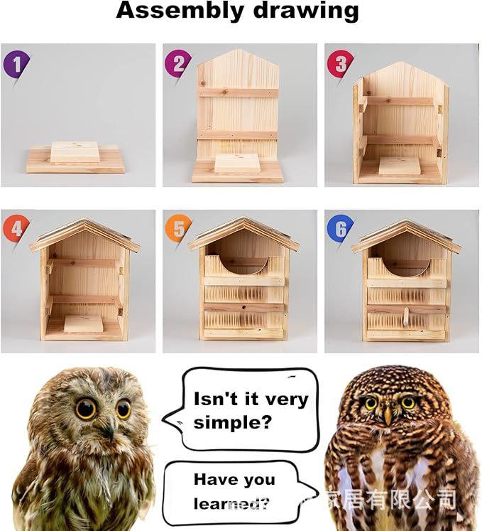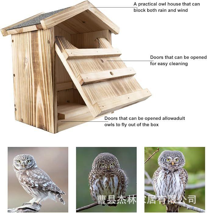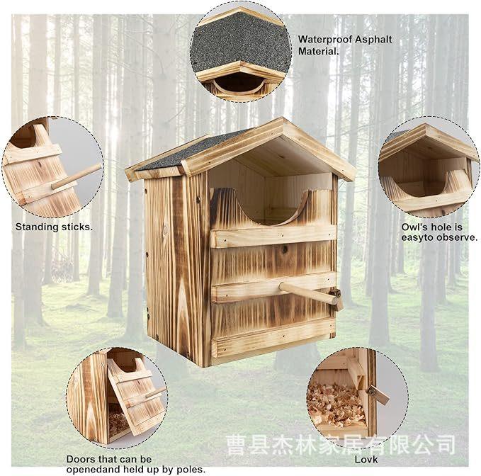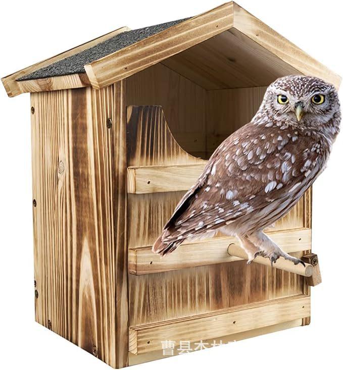 Casa de Búho de Madera Transfronteriza Decoración de Jardín Exterior Nido de Pájaro Comedero para Pájaros con Ventana Nido de Colibrí Nido de Pájaro