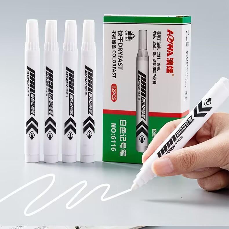 Plumón Blanco Secado Rápido a Prueba de Aceite Impermeable No se Desvanece Plumón de Punta Gruesa Pintura Artística Marcador Industrial Venta al Mayoreo