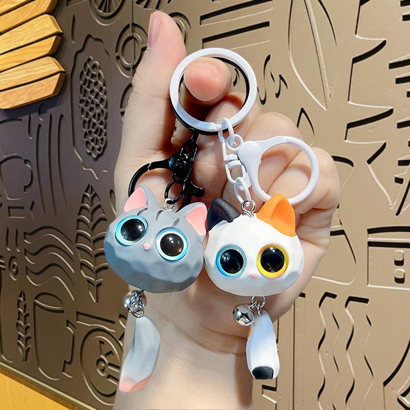 Gato de Ojos Grandes Dibujos Animados Creativo Lindo Estéreo Resina Pareja Coche Bolso Colgante Regalo Muñeco Llavero