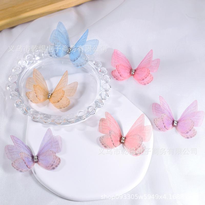 Mariposa Mini de Malla de 5cm Doble Capa Hecha a Mano DIY Materiales Decorativos Accesorios Adornos para la Cabeza Accesorios para el Cabello Pegatinas para Cara Uñas al por Mayor