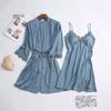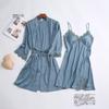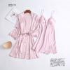 20 Pijamas Nuevos para Mujer con Almohadillas para el Busto Primavera y Verano Seda de Imitación Cuello en V Sexy Camisón con Tirantes Encaje Camisón Conjunto de Dos Piezas Venta al por Mayor