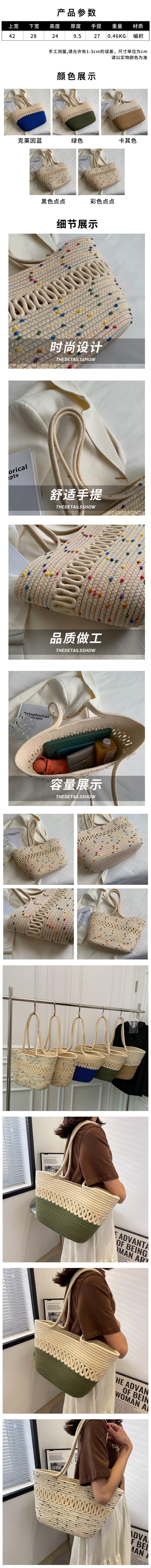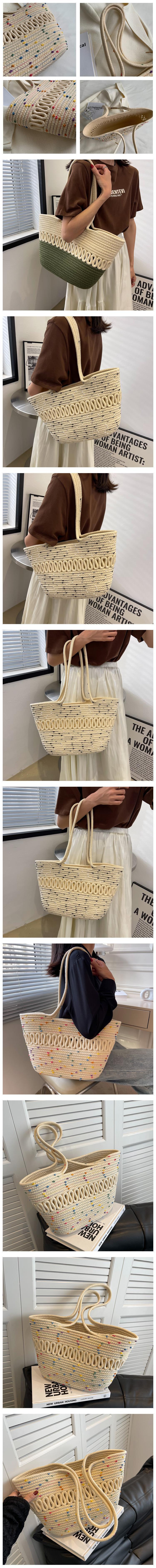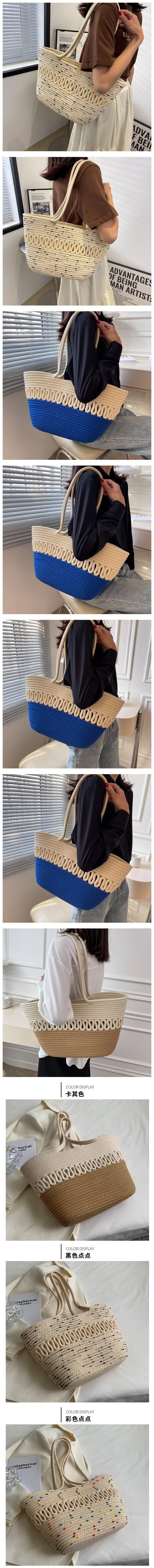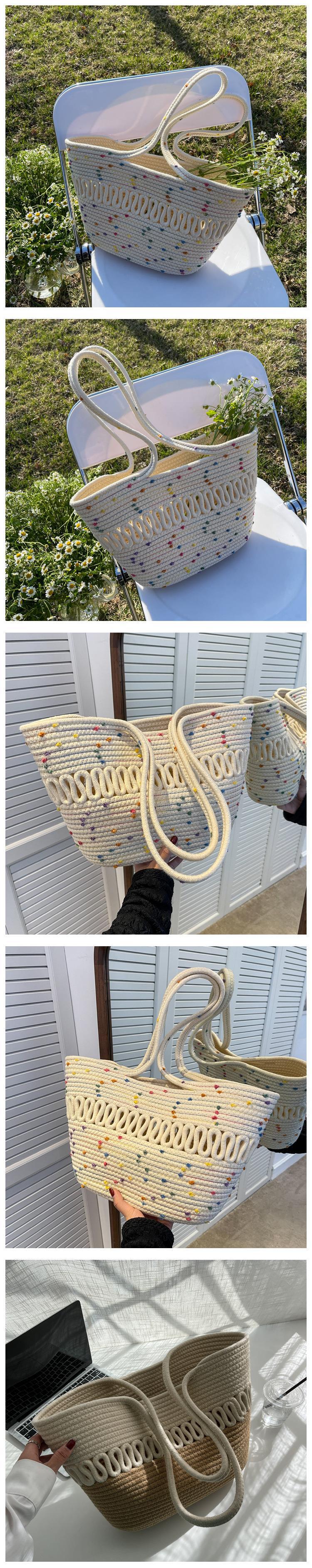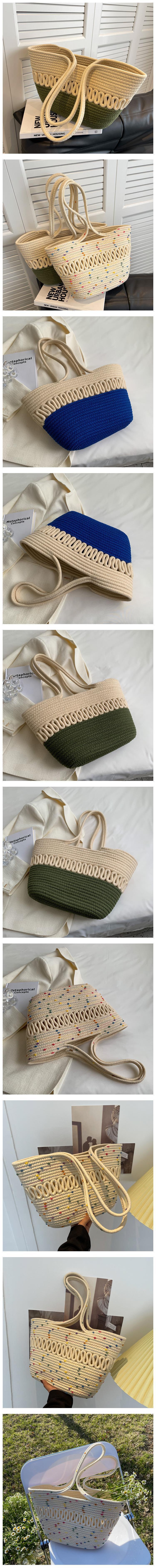 Bolso de hombro tejido con hilo de algodón recortado, nuevo bolso de paja francés de gran capacidad para verano, bolso de playa para vacaciones en la playa para mujer