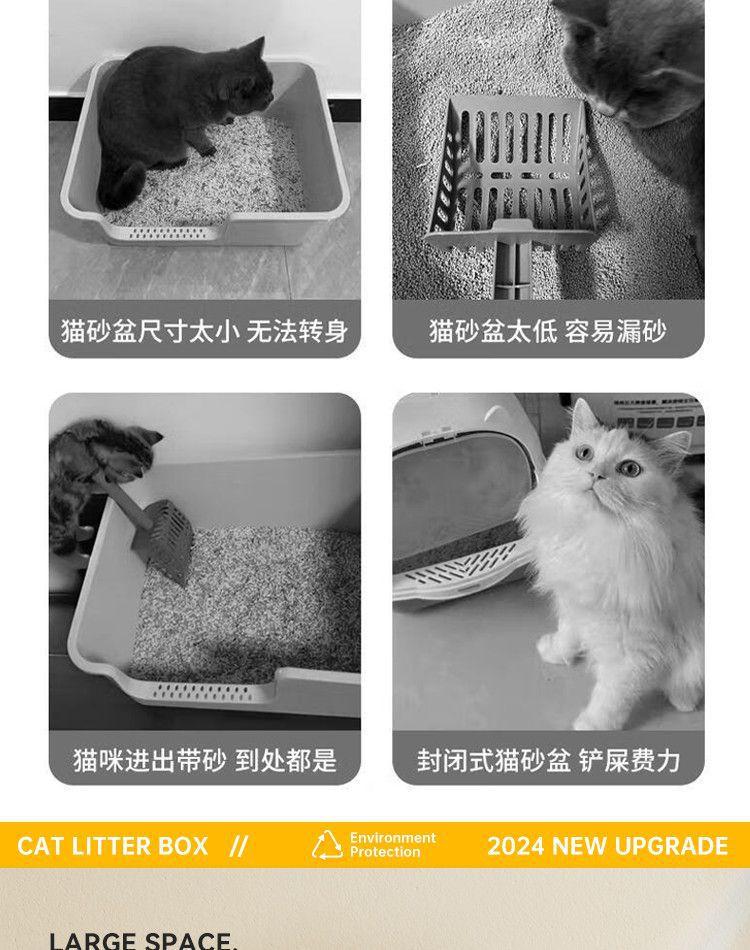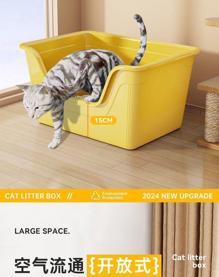Caja de Arena para Gatos Extra Grande Totalmente Abierta Semi-Cerrada Inodoro Anti-Salpicaduras Caja de Arena Extra Enorme Ragdoll Maine Coon Caja de Arena para Gatos